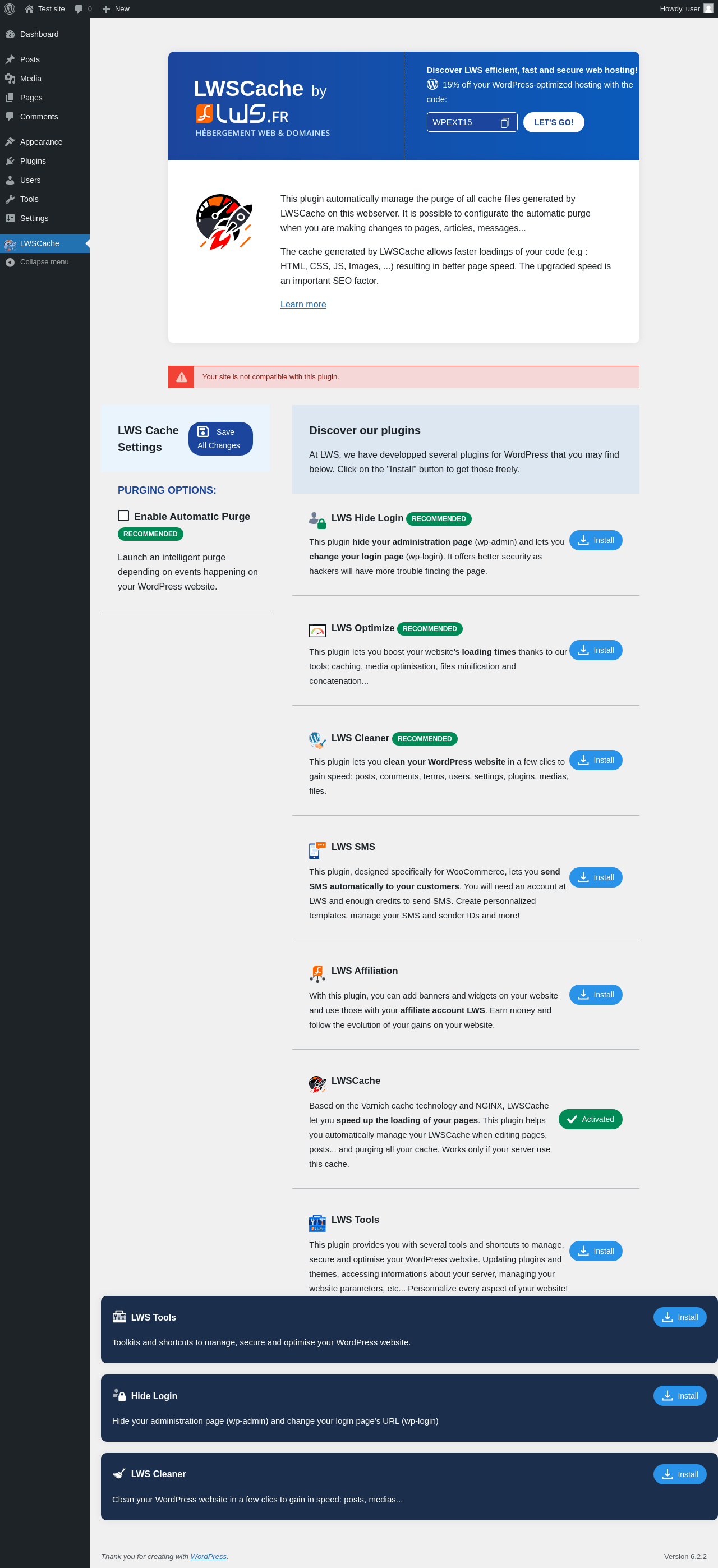 Does LWSCache work with WordPress 6.2.2 and PHP 8.1.12? A smoke test was performed on .