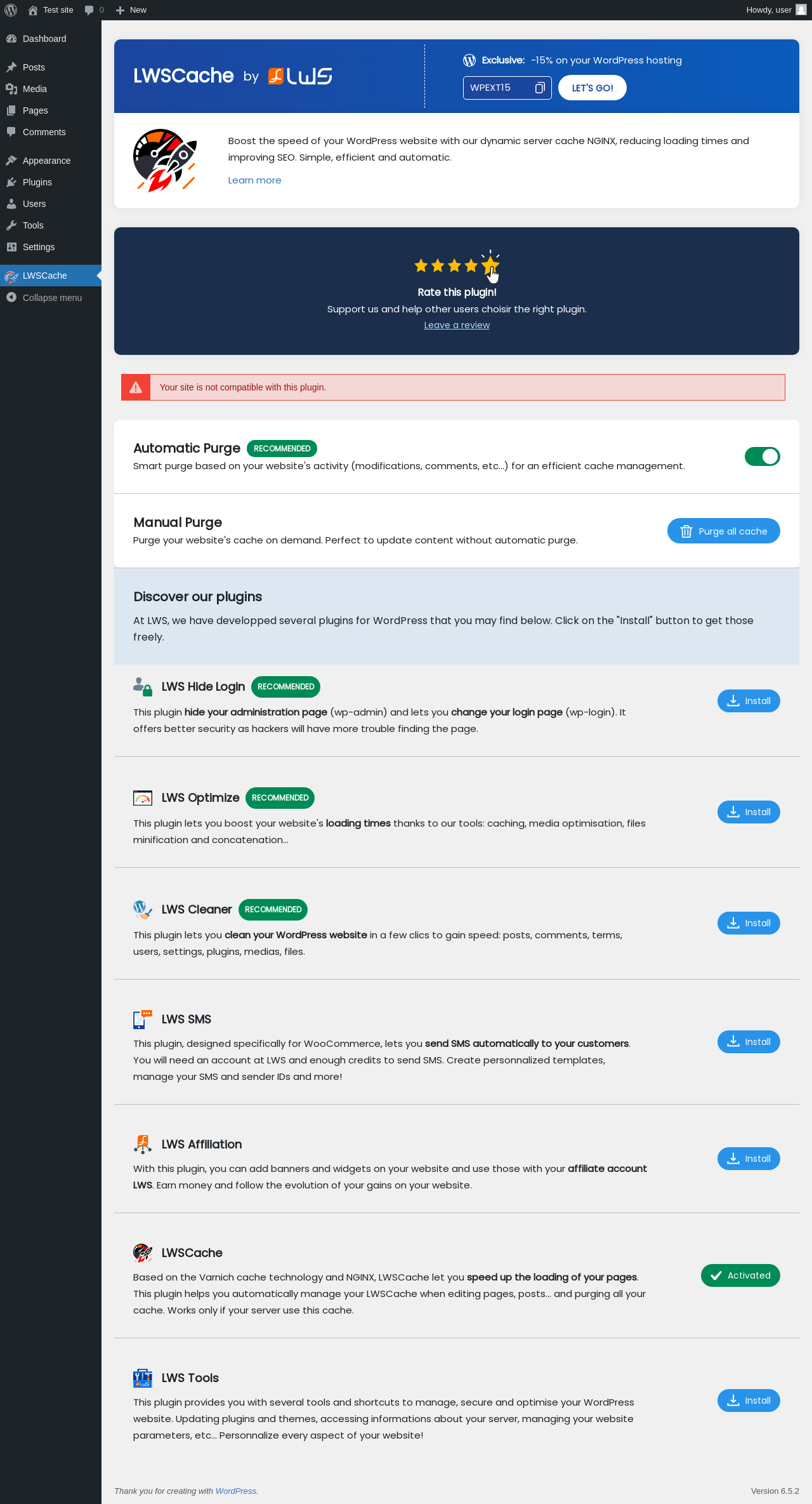 Does LWSCache work with WordPress 6.5.2 and PHP 8.1.12? A smoke test was performed on .