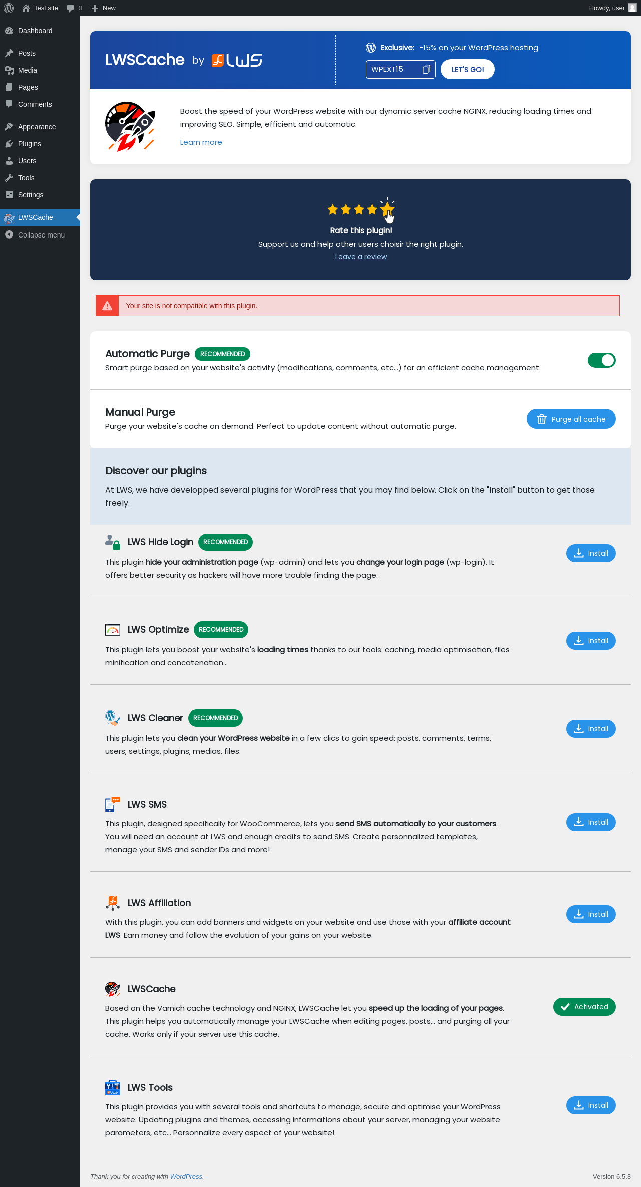 Does LWSCache work with WordPress 6.5.3 and PHP 8.1.12? A smoke test was performed on .