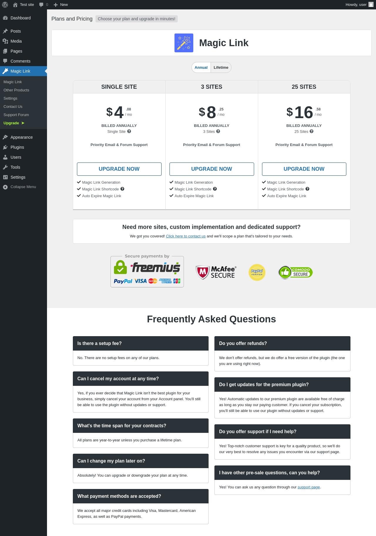 | URL | /wp-admin/admin.php?page=magic-link-pricing |