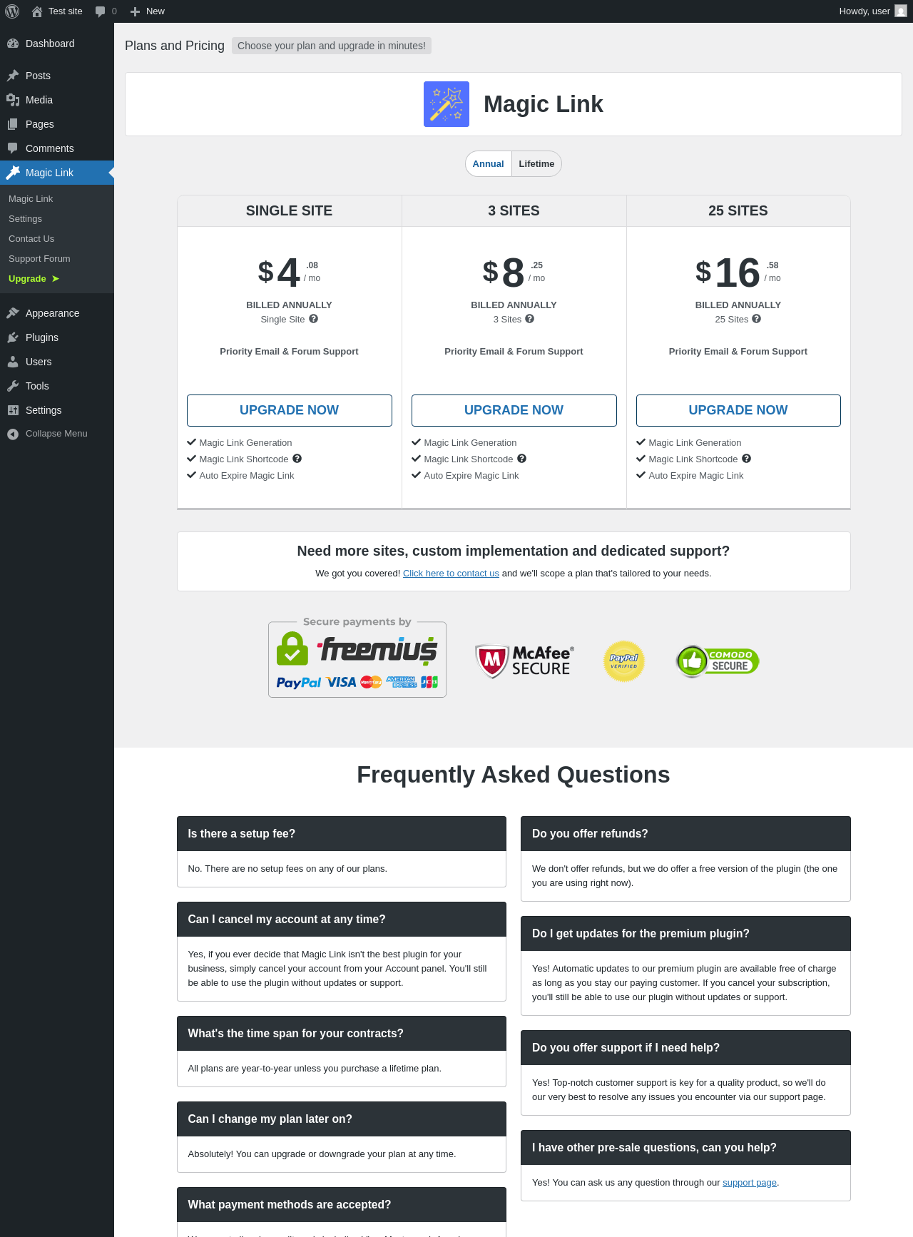 | URL | /wp-admin/admin.php?page=magic-link-pricing |