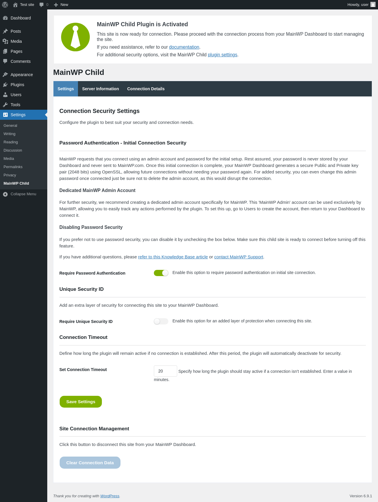 | URL | /wp-admin/options-general.php?page=mainwp_child_tab |