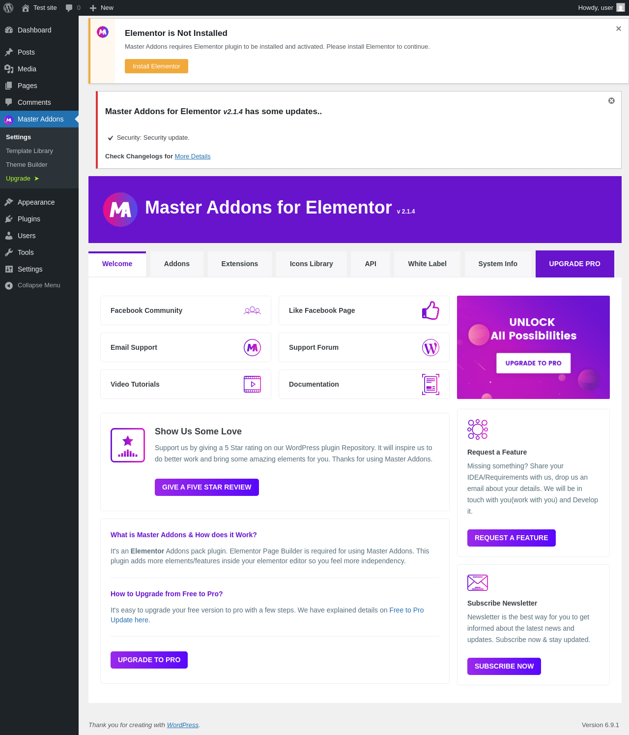 Does Master Addons for Elementor work with WordPress 6.9.1 and PHP 8.1.12? A smoke test was performed on .