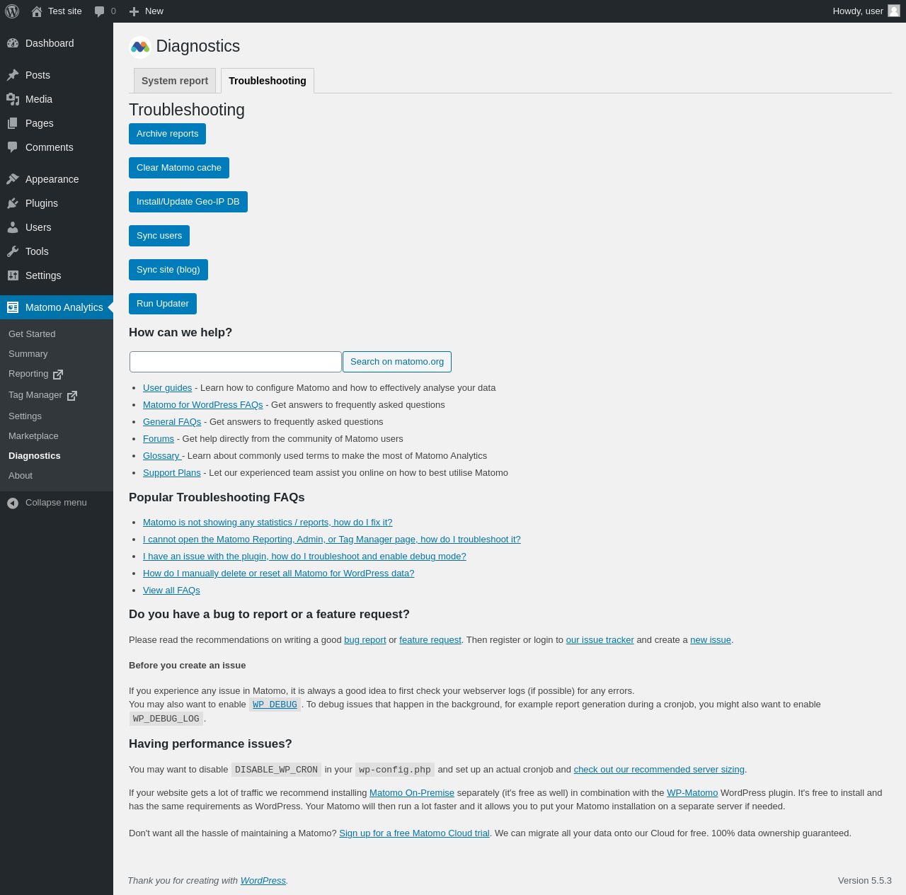 | URL | /wp-admin/admin.php?page=matomo-systemreport&tab=troubleshooting |