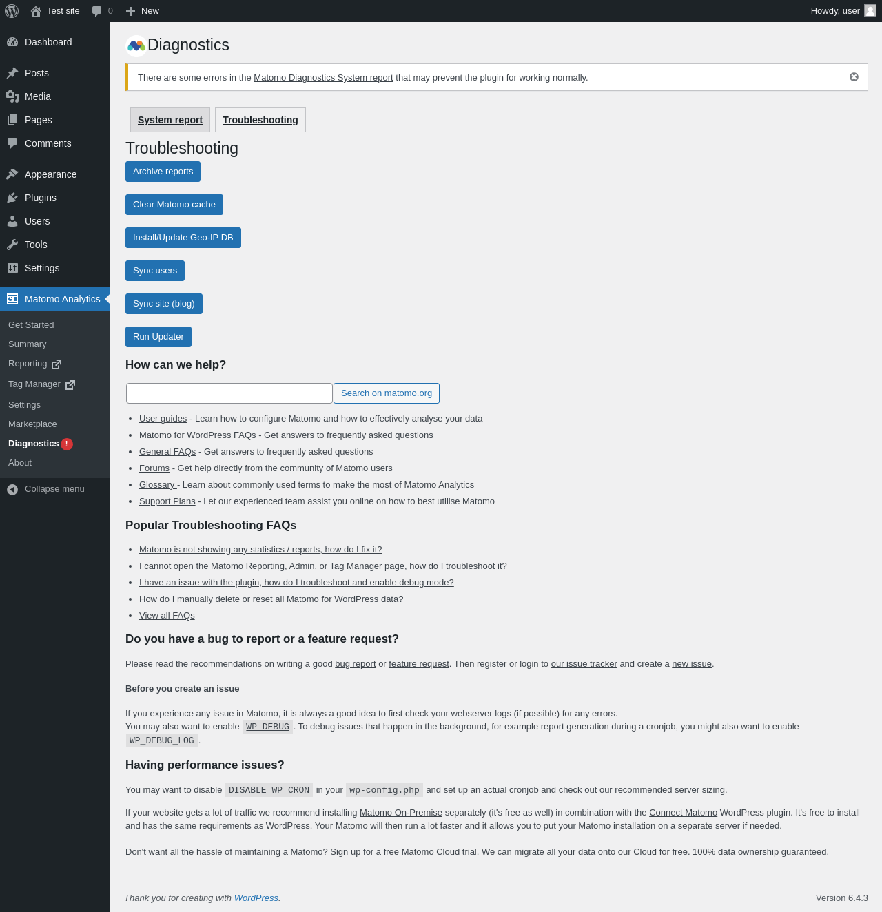 Matomo Analytics → Diagnostics → Troubleshooting