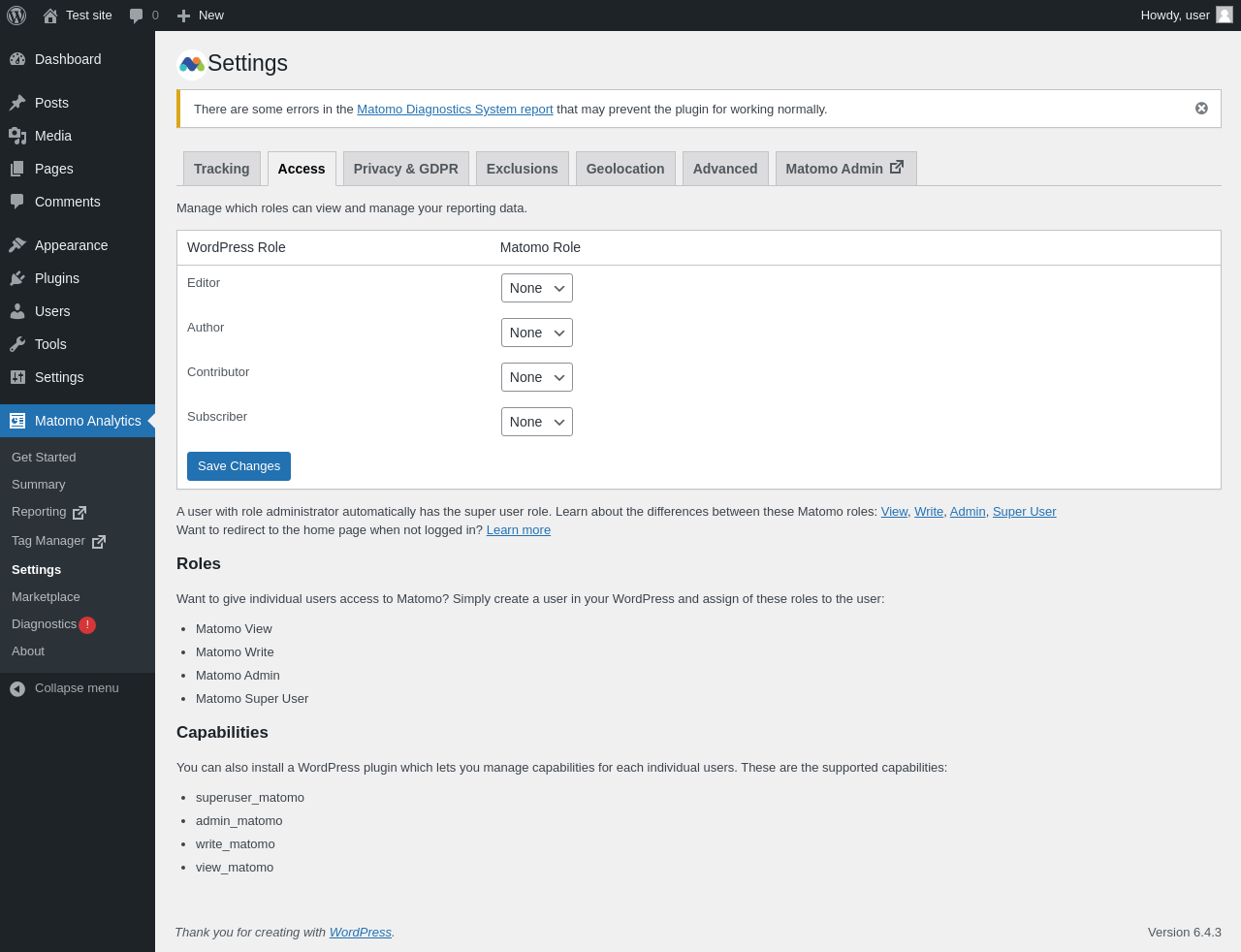 Page screenshot: Matomo Analytics → Diagnostics