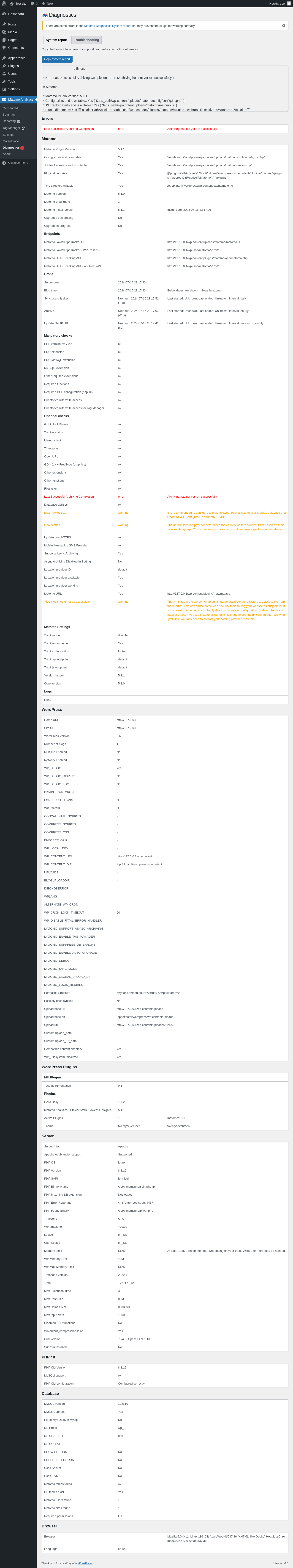 Matomo Analytics → Diagnostics → Troubleshooting
