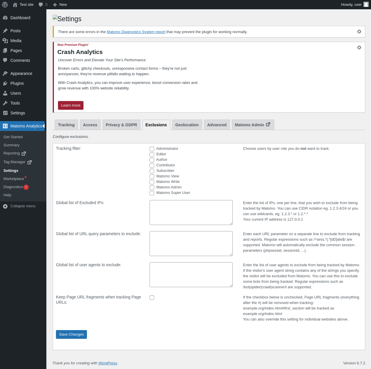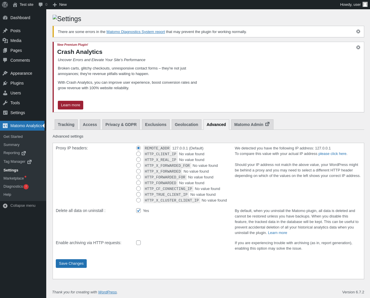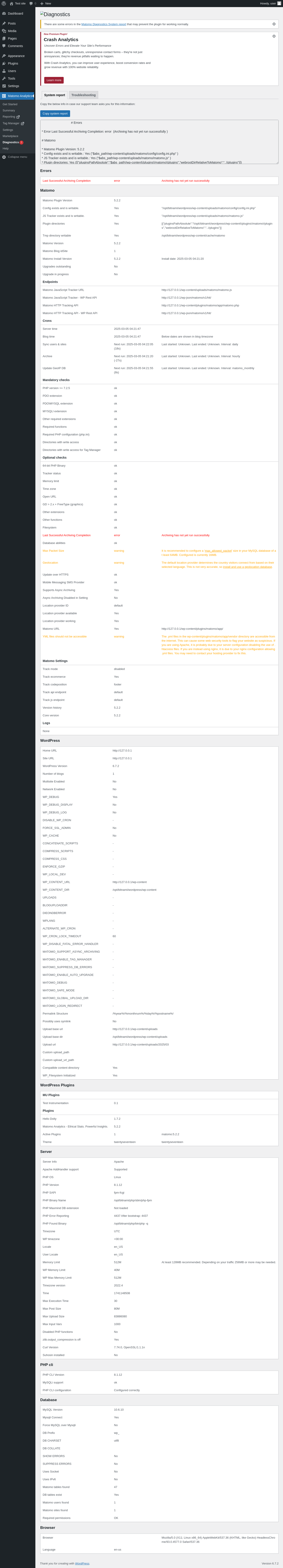 Matomo Analytics → Diagnostics