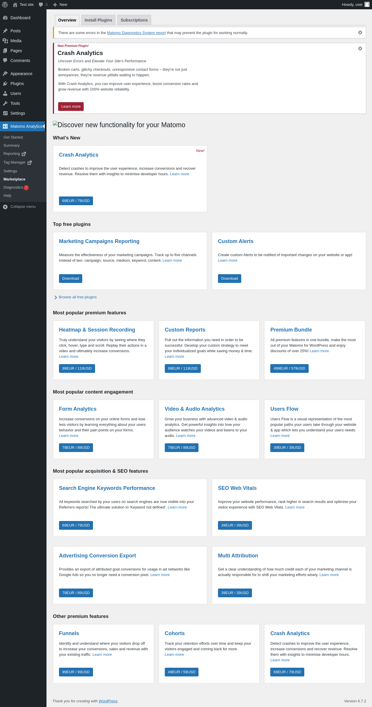 Matomo Analytics → Marketplace → Subscriptions