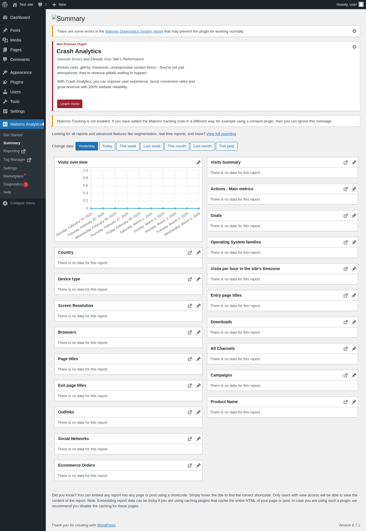 Does "Matomo Analytics - Ethical Stats. Powerful Insights." work with WordPress 6.7.2 and PHP 8.1.12? A smoke test was performed on 2025-03-05 04:21:01 UTC .