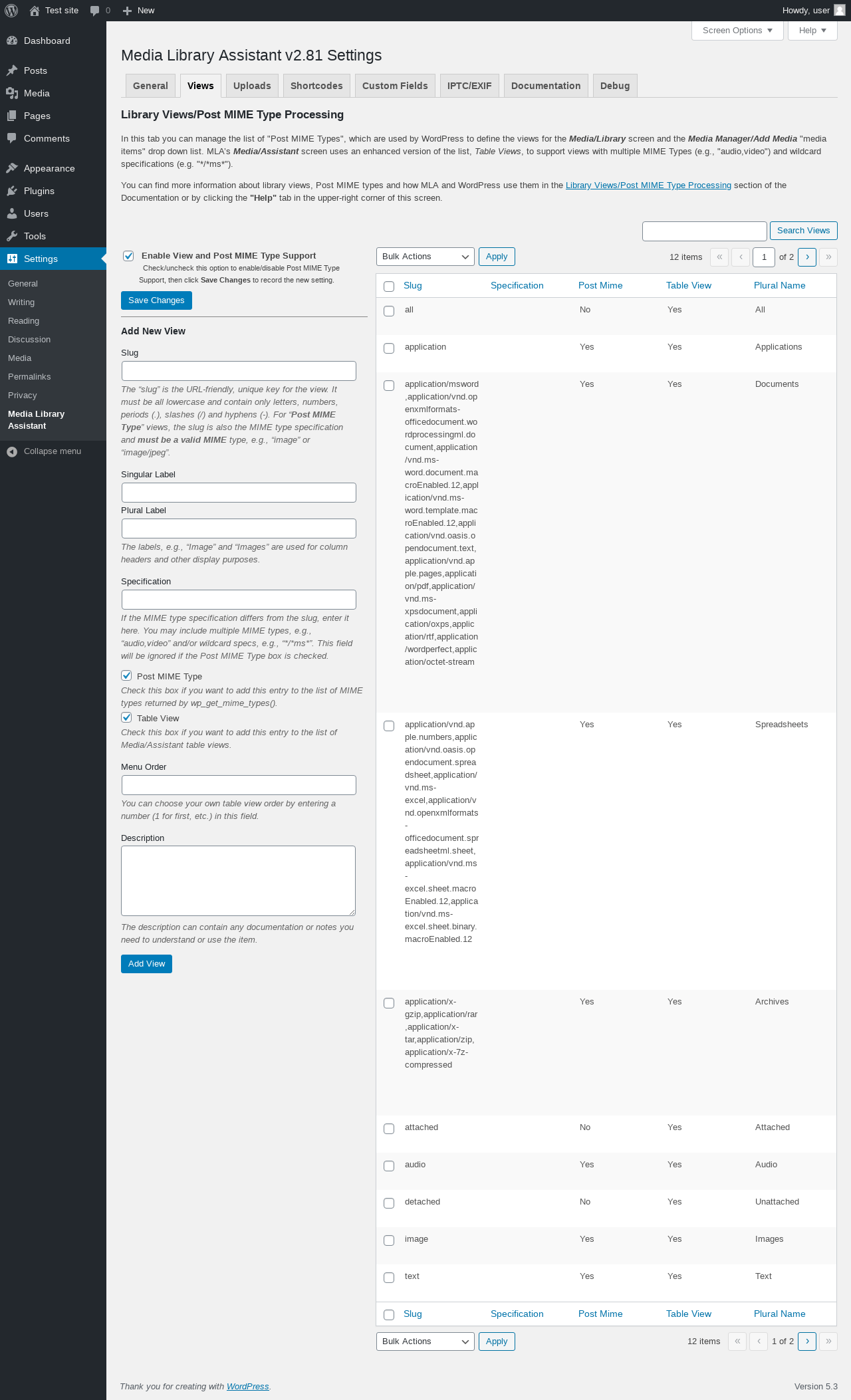 | URL | /wp-admin/options-general.php?page=mla-settings-menu-view&mla_tab=view |