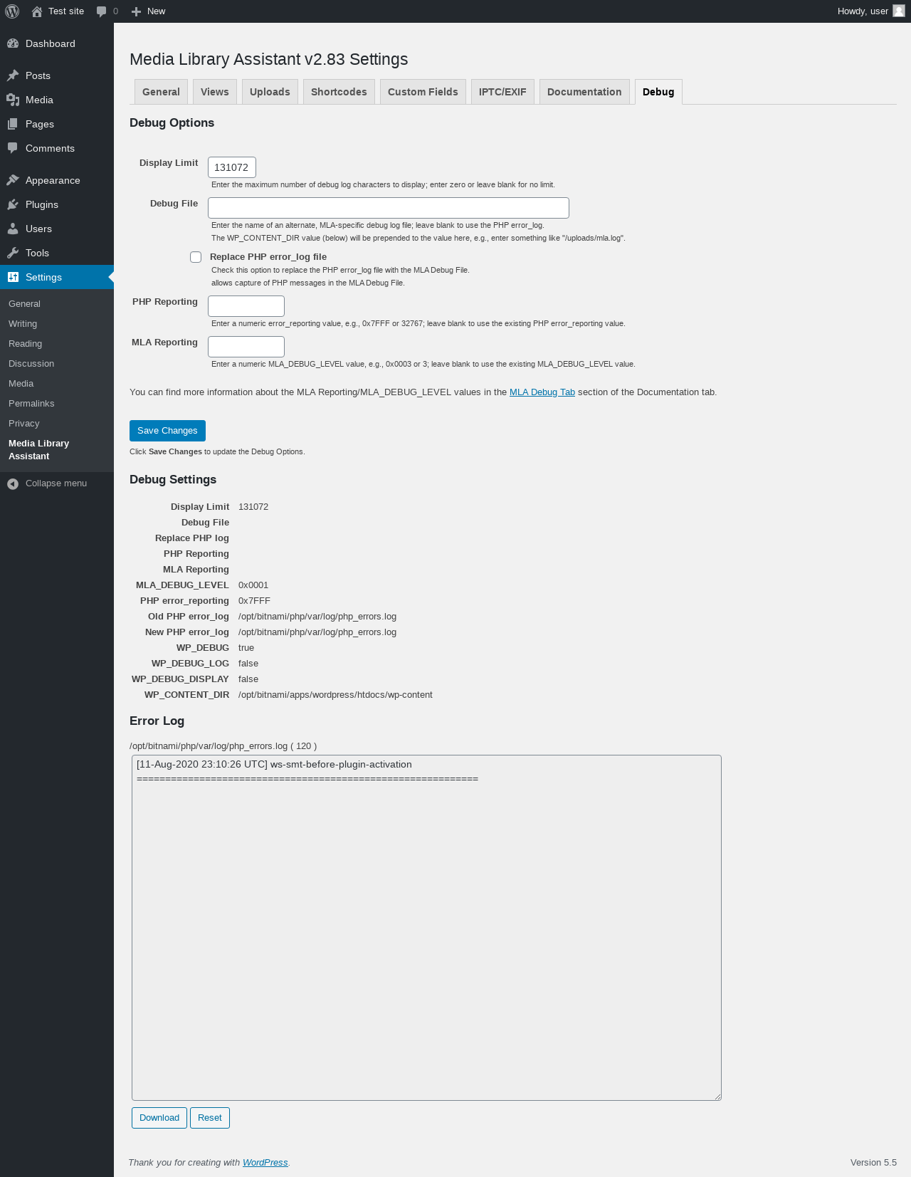 | URL | /wp-admin/options-general.php?page=mla-settings-menu-debug&mla_tab=debug |
