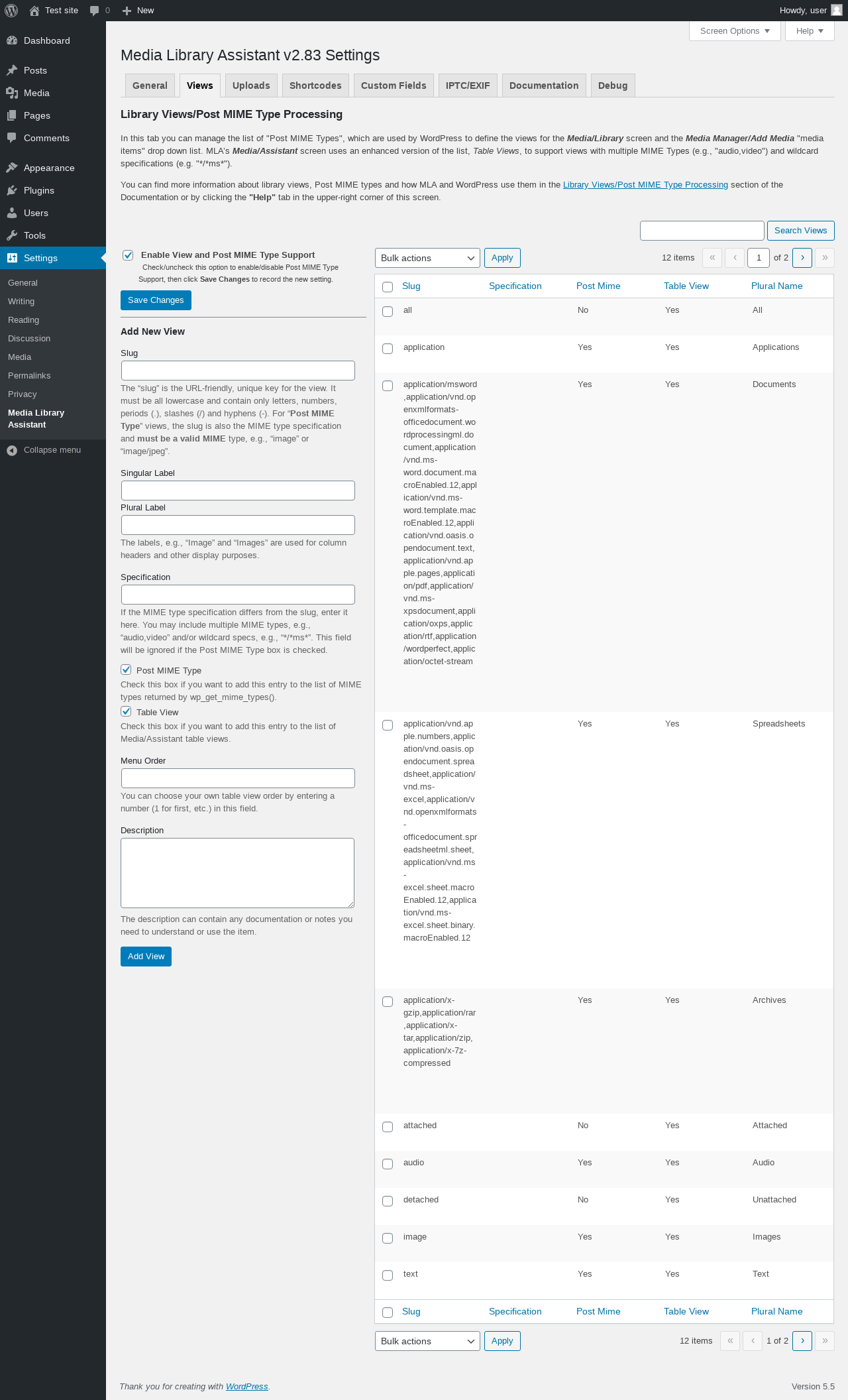 | URL | /wp-admin/options-general.php?page=mla-settings-menu-view&mla_tab=view |