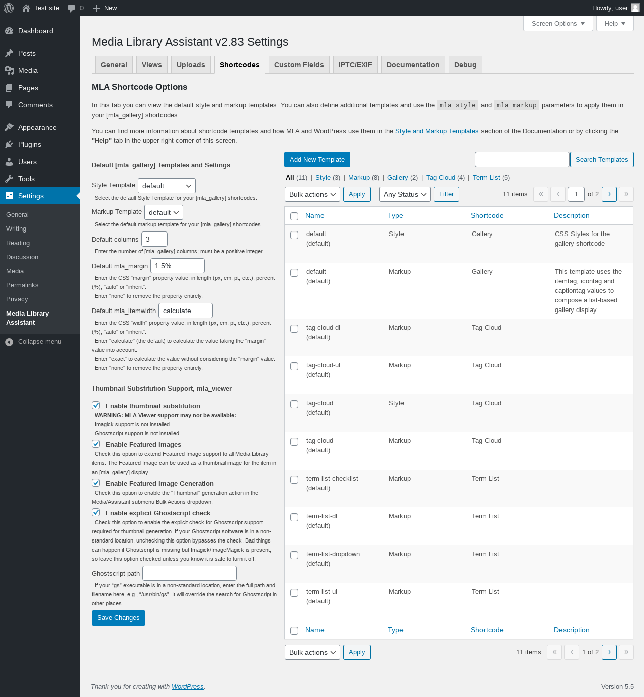 | URL | /wp-admin/options-general.php?page=mla-settings-menu-shortcodes&mla_tab=shortcodes |