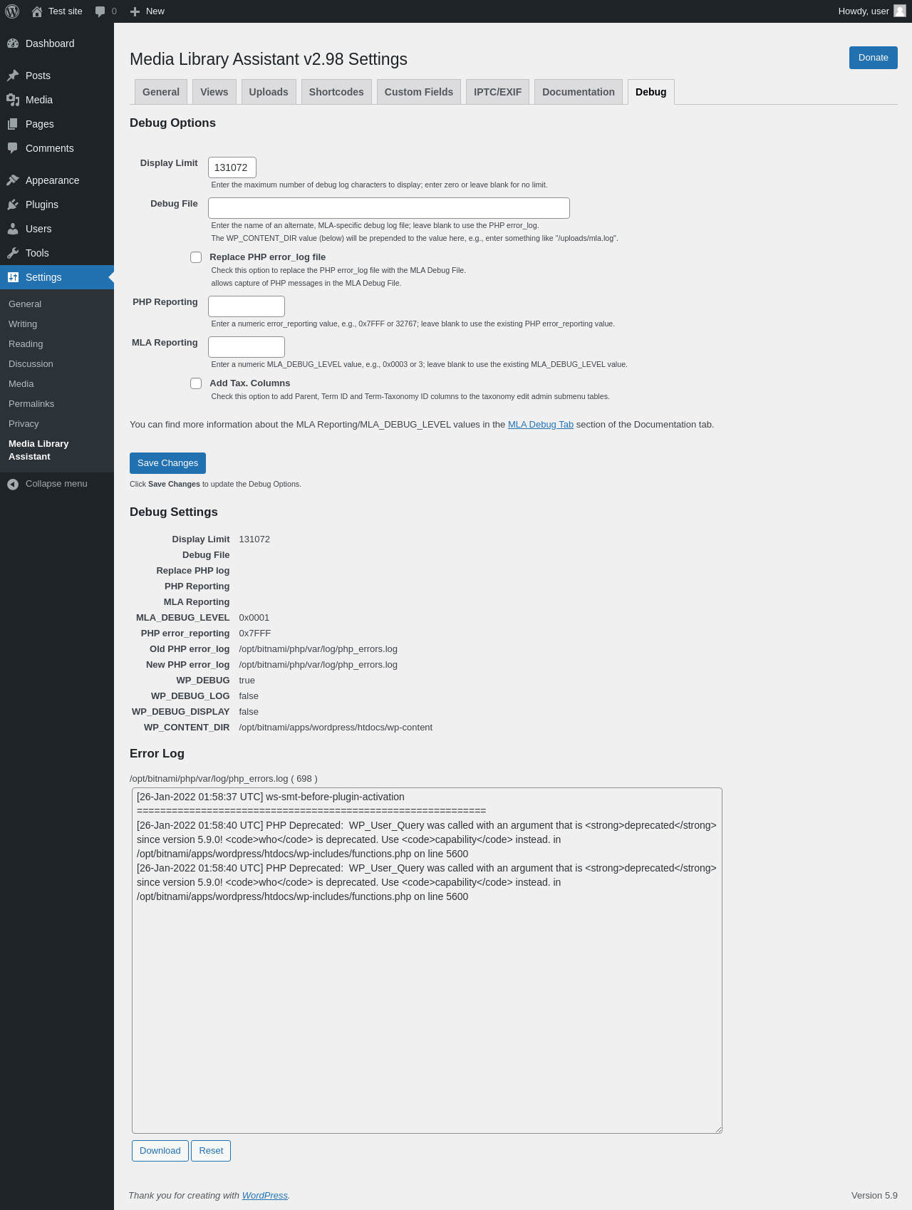 | URL | /wp-admin/options-general.php?page=mla-settings-menu-debug&mla_tab=debug |