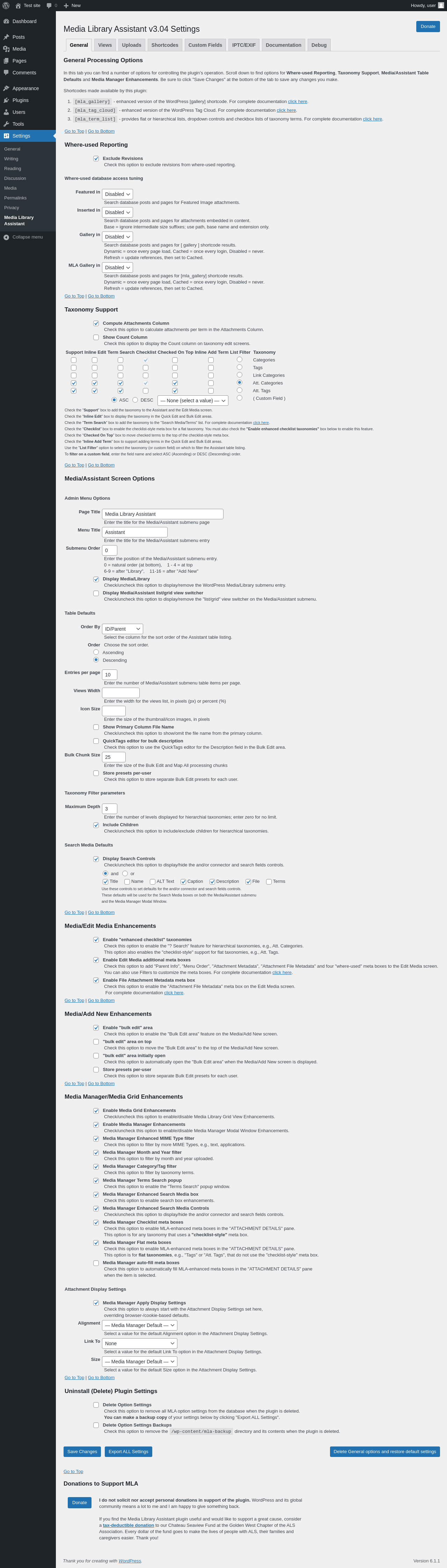 | URL | /wp-admin/options-general.php?page=mla-settings-menu-general |
