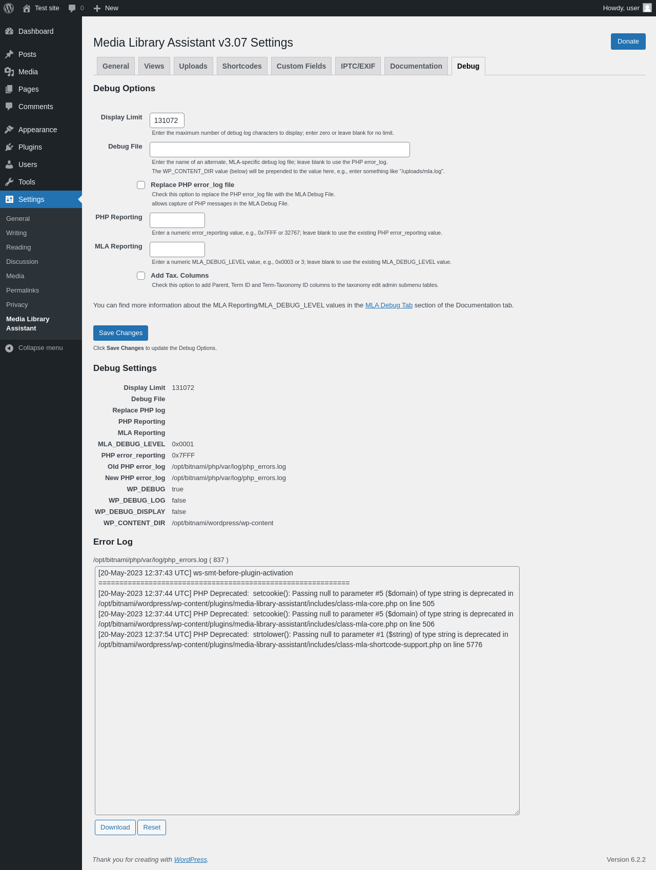 | URL | /wp-admin/options-general.php?page=mla-settings-menu-debug&mla_tab=debug |