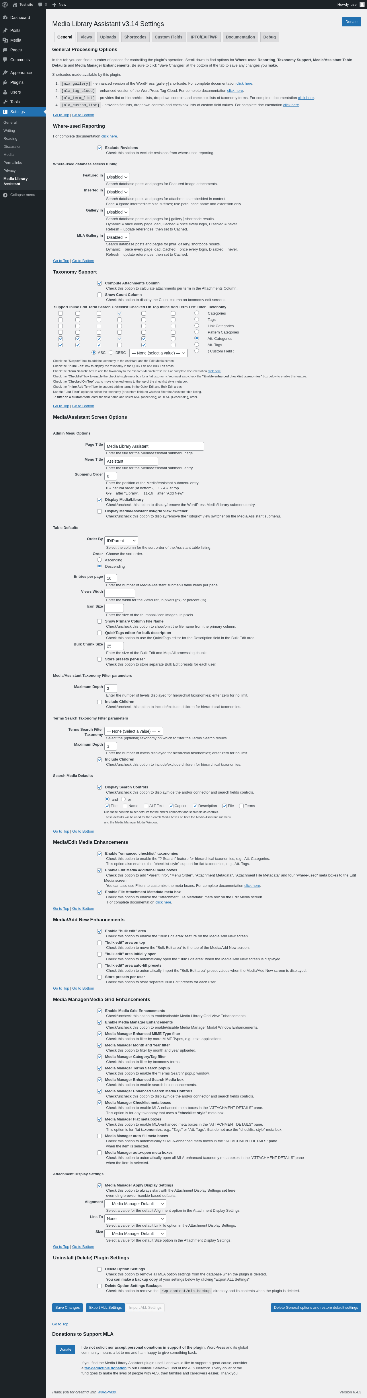 | URL | /wp-admin/options-general.php?page=mla-settings-menu-general |