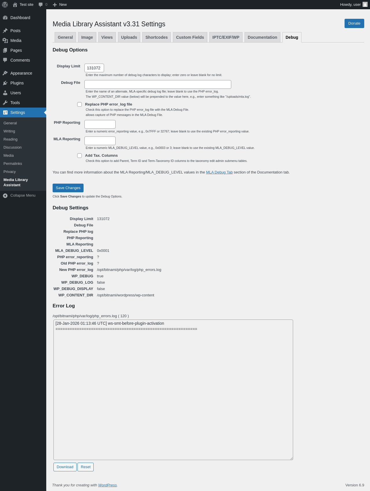 | URL | /wp-admin/options-general.php?page=mla-settings-menu-debug&mla_tab=debug |
