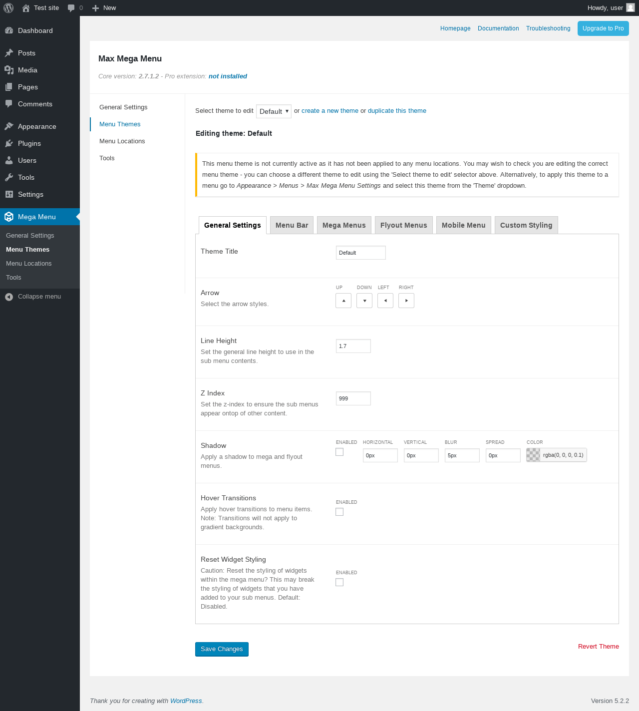 Does Max Mega Menu work with WordPress 5.2.2 and PHP 7.2.16? A smoke test was performed on .