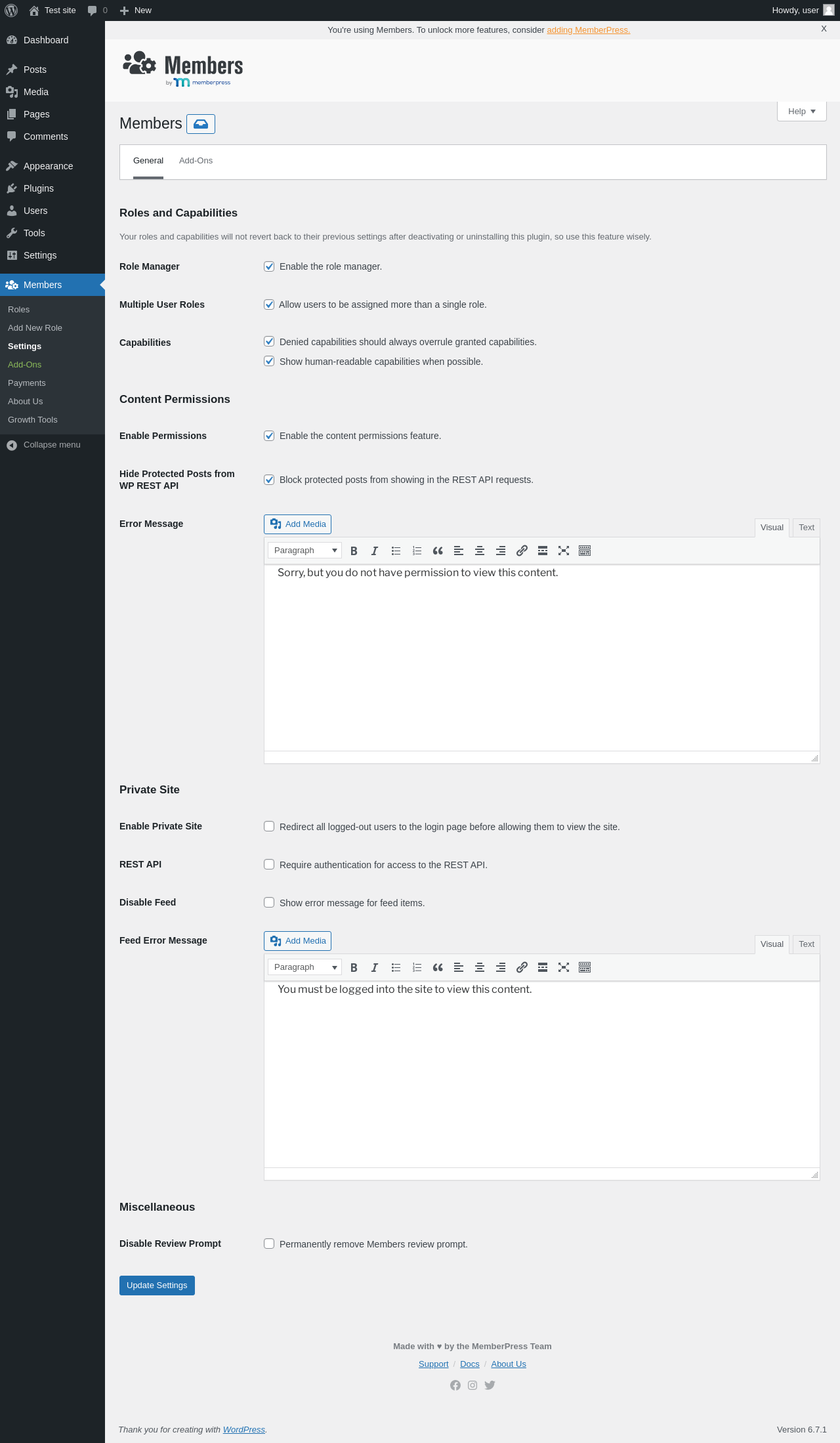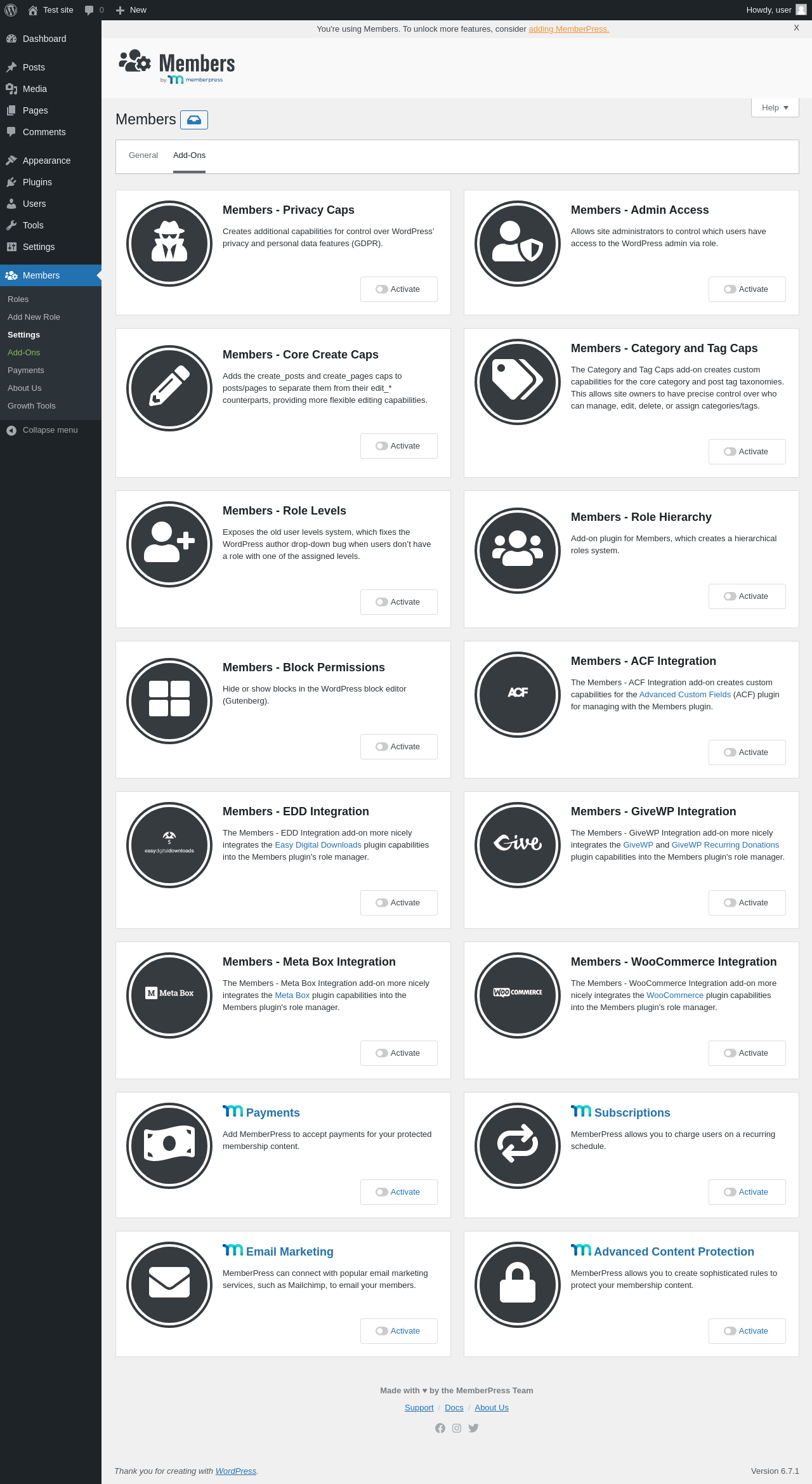 | URL | /wp-admin/admin.php?page=members-settings&view=add-ons |