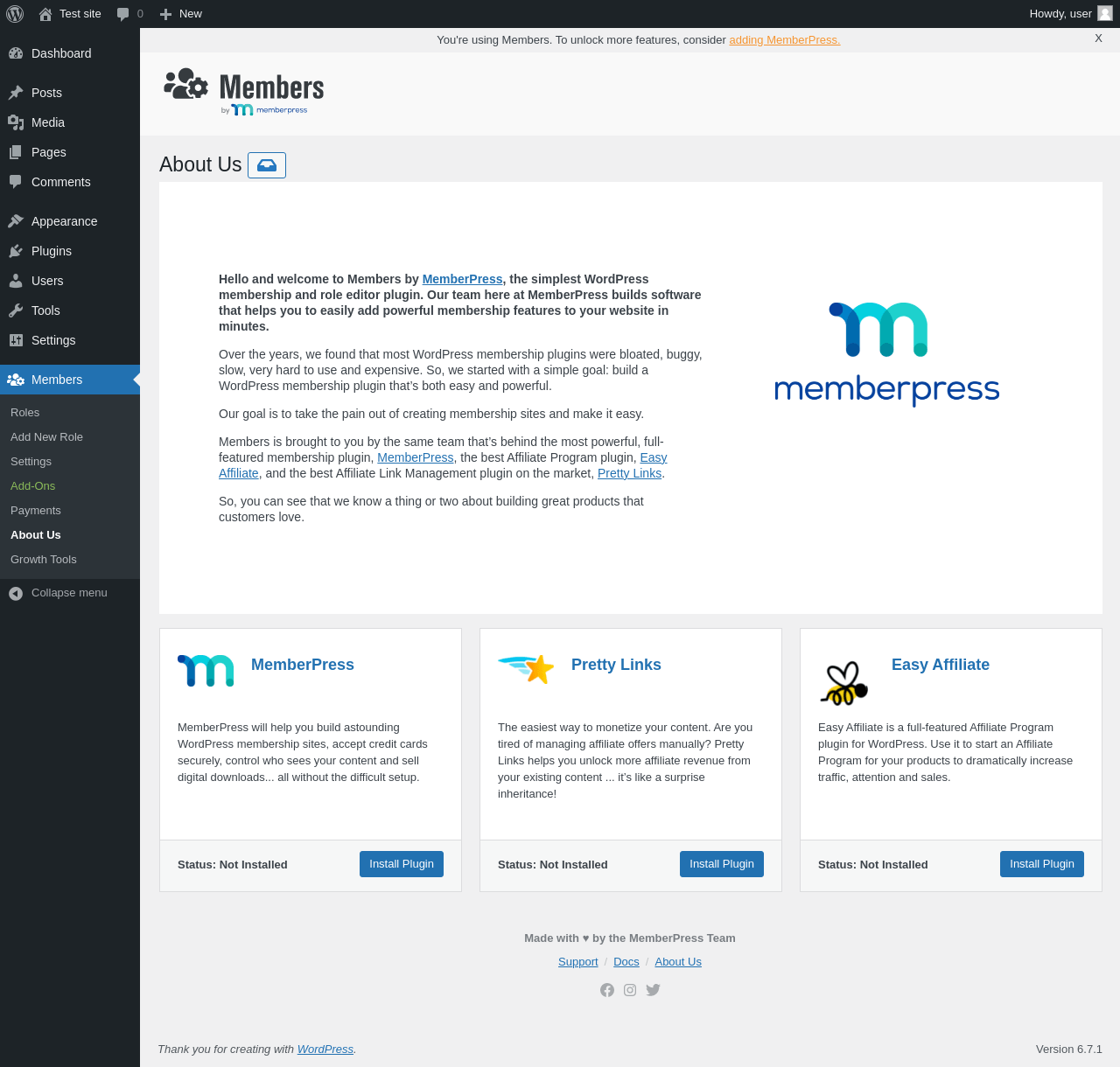 | URL | /wp-admin/admin.php?page=members-about |
