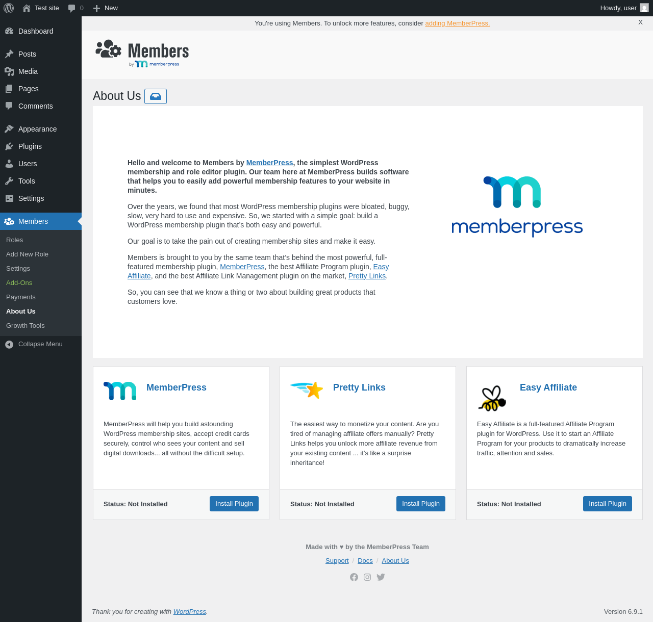 | URL | /wp-admin/admin.php?page=members-settings&view=add-ons |
