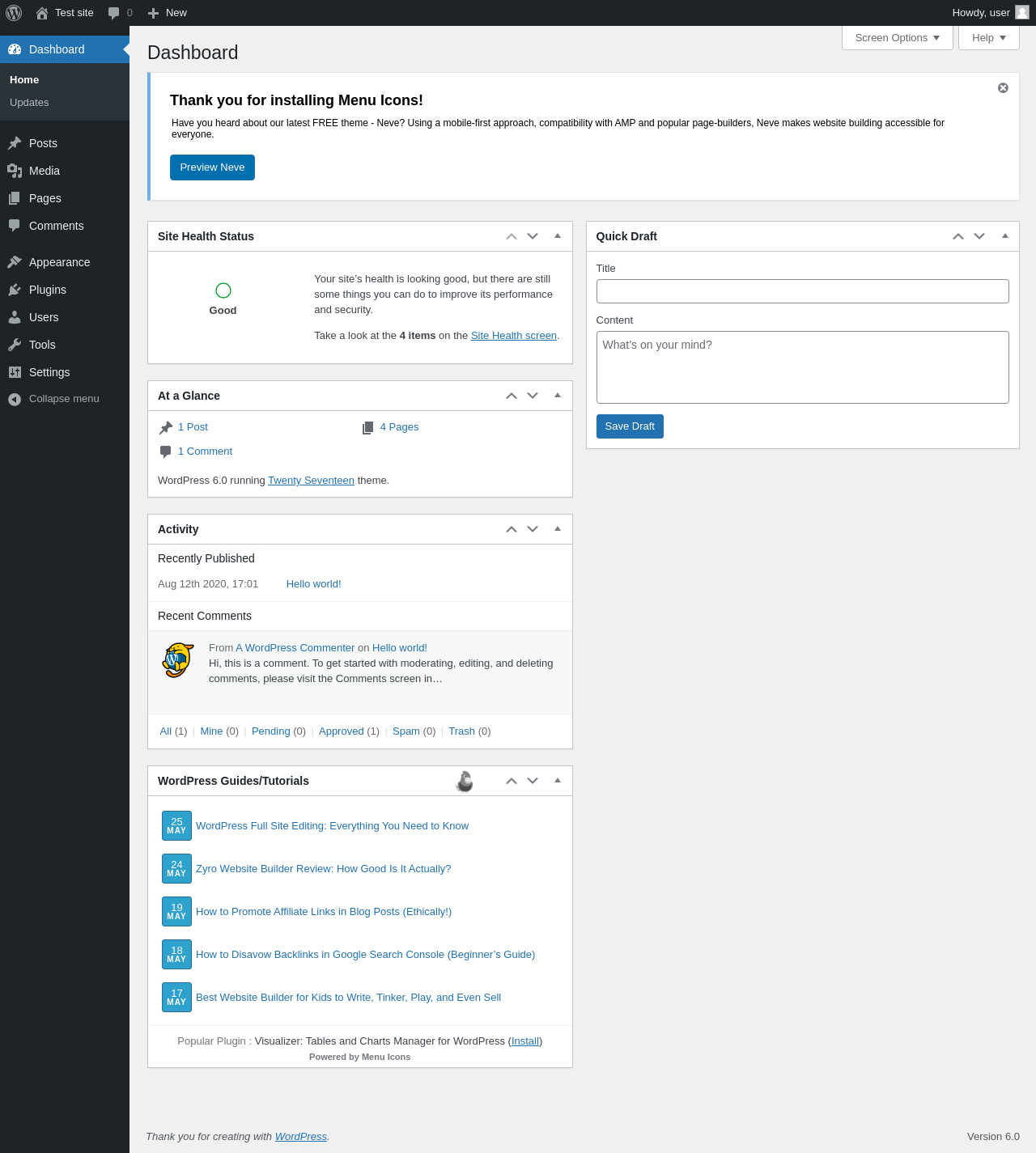 Does Menu Icons work with WordPress 6.0 and PHP 7.4.8? A smoke test was performed on .