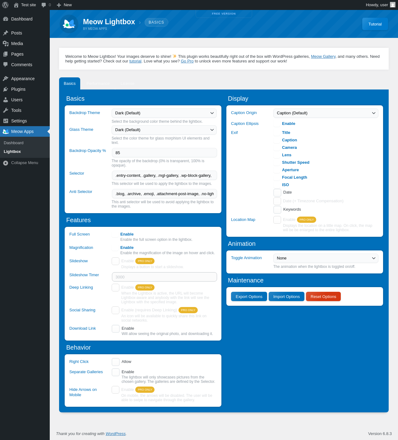 Does Meow Lightbox work with WordPress 6.8.3 and PHP 8.1.12? A smoke test was performed on .