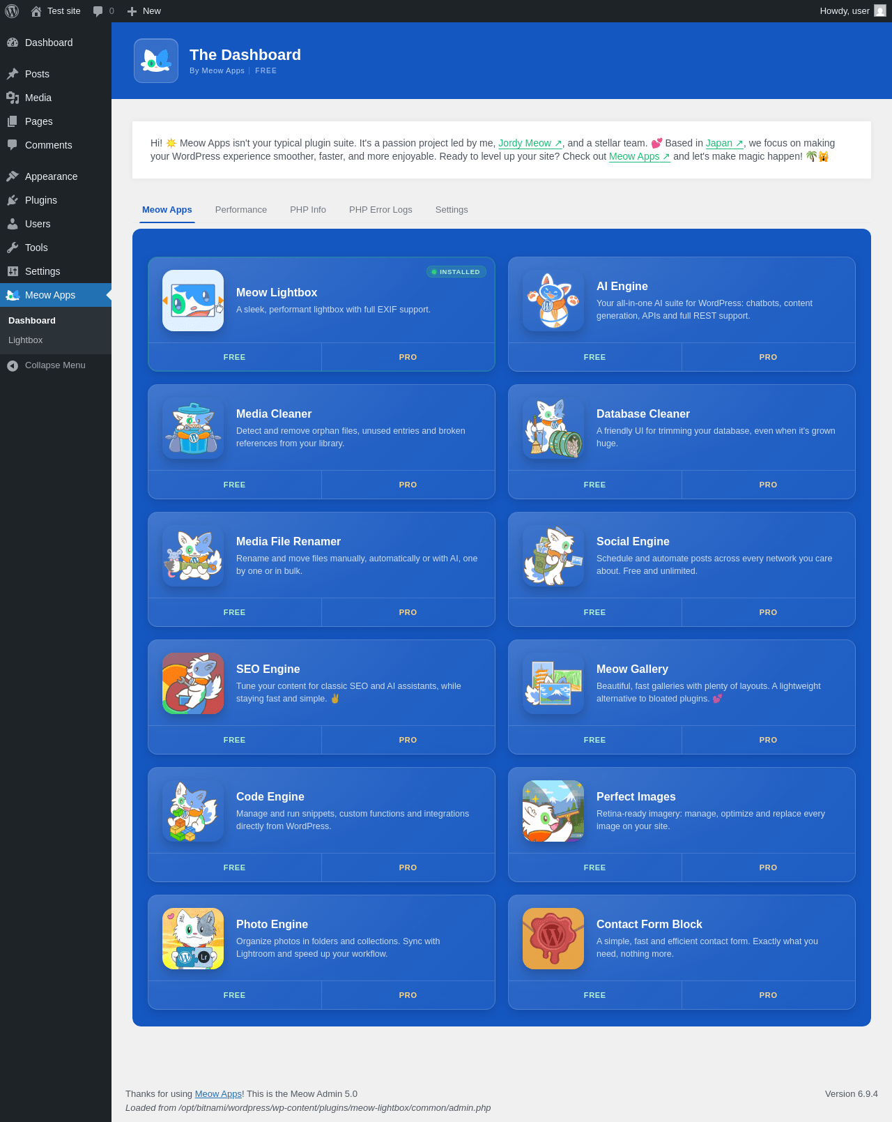 Does Meow Lightbox work with WordPress 6.9.4 and PHP 8.1.12? A smoke test was performed on .