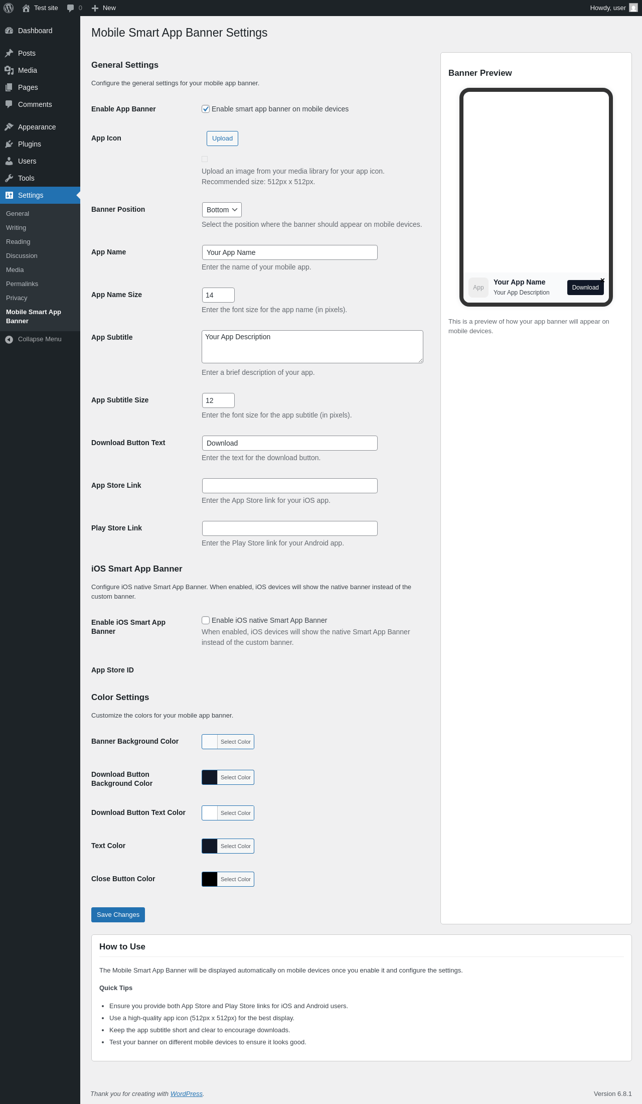 | URL | /wp-admin/options-general.php?page=mobile-smart-app-banner |