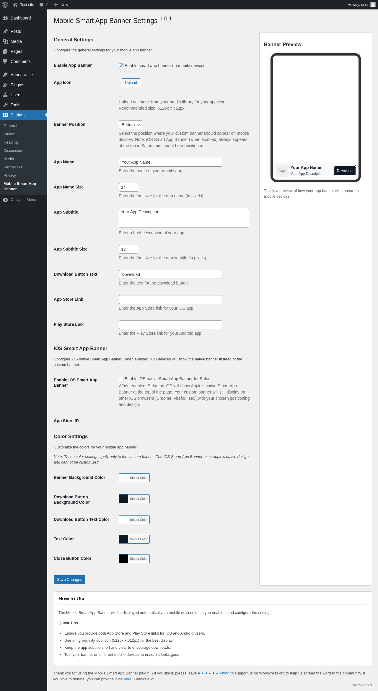 | URL | /wp-admin/options-general.php?page=mobile-smart-app-banner |
