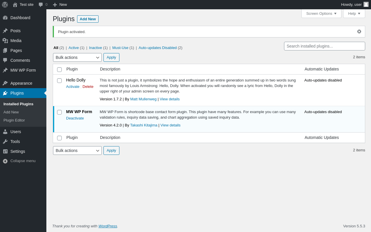Does MW WP Form work with WordPress 5.5.3 and PHP 7.4.8? A smoke test was performed on .