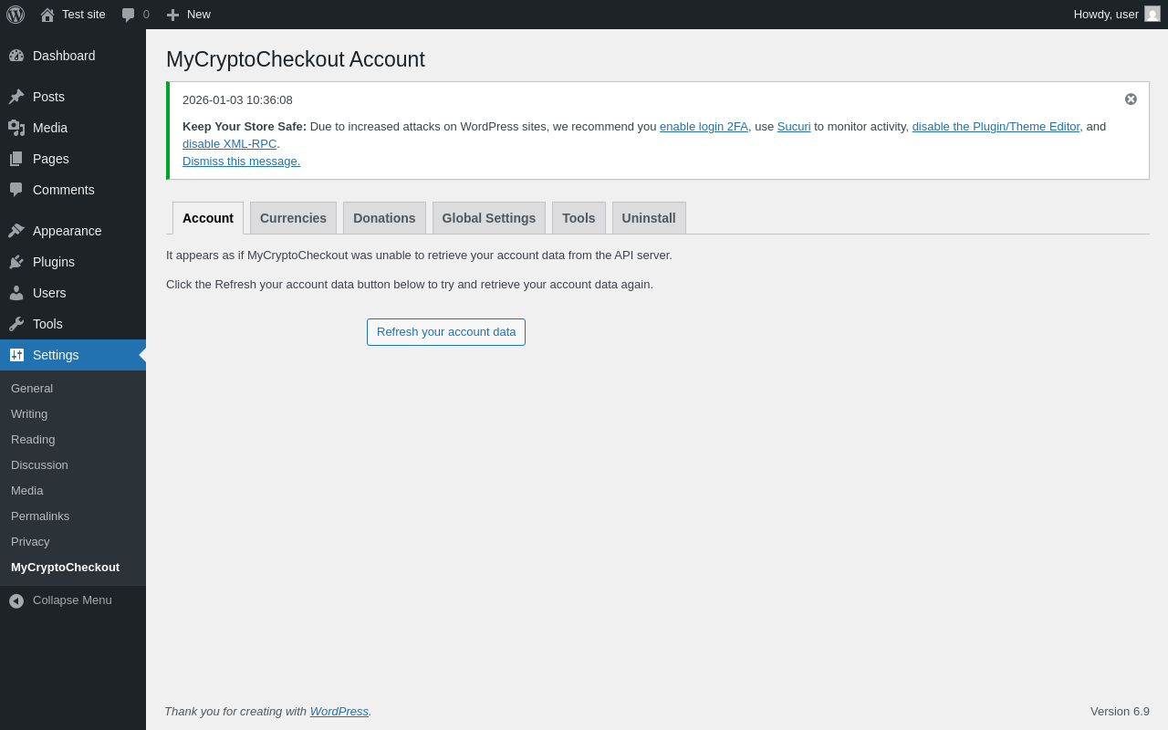 Does MyCryptoCheckout work with WordPress 6.9 and PHP 8.1.12? A smoke test was performed on .