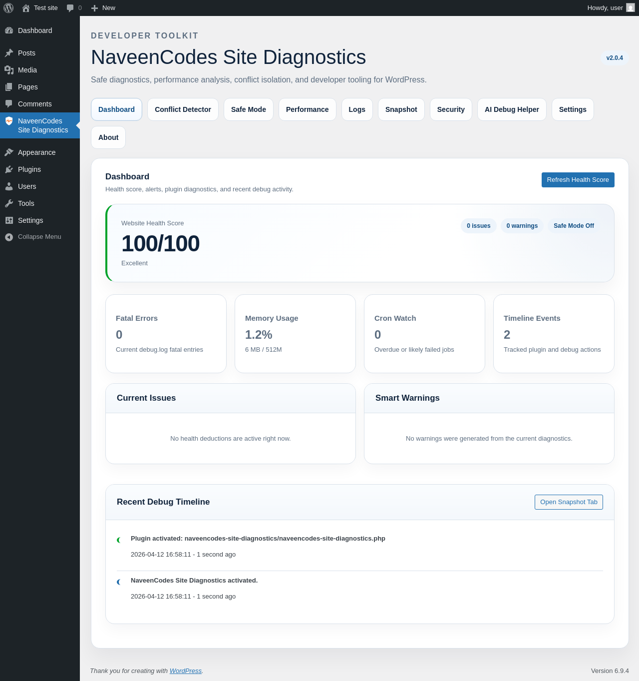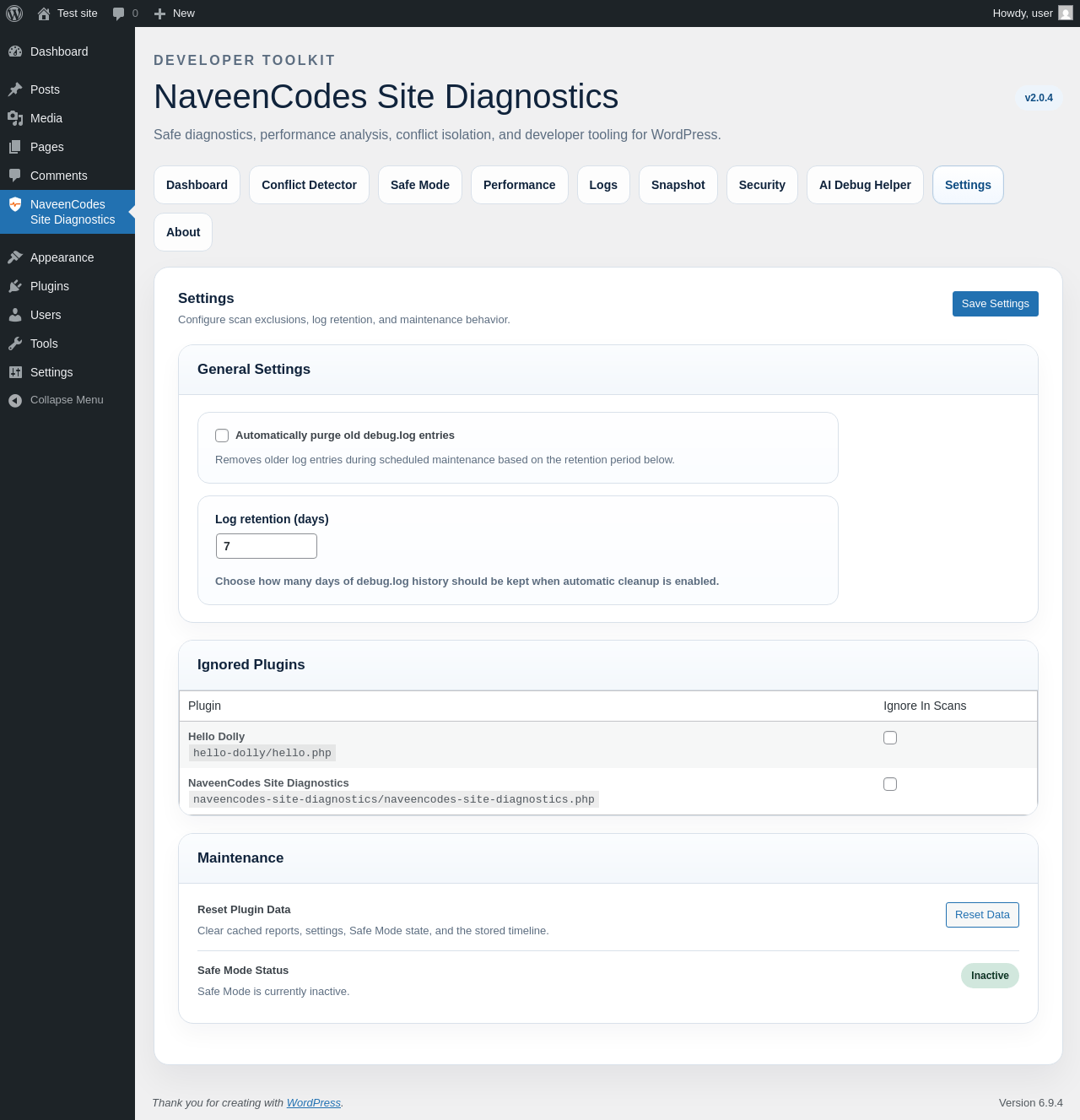 | URL | /wp-admin/admin.php?page=naveencodes-site-diagnostics&tab=safe-mode |