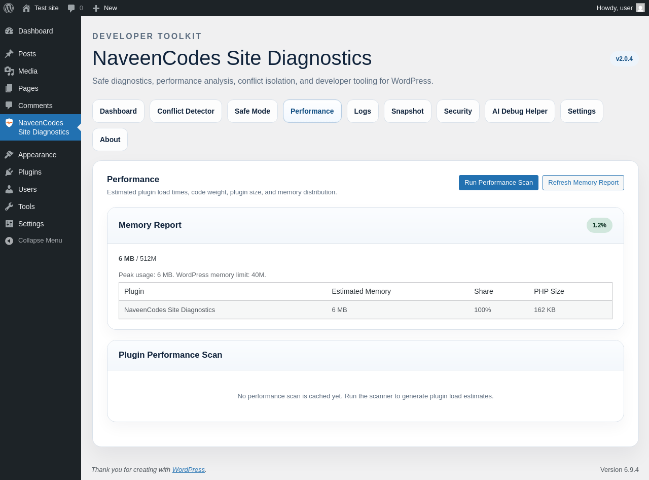 | URL | /wp-admin/admin.php?page=naveencodes-site-diagnostics&tab=performance |