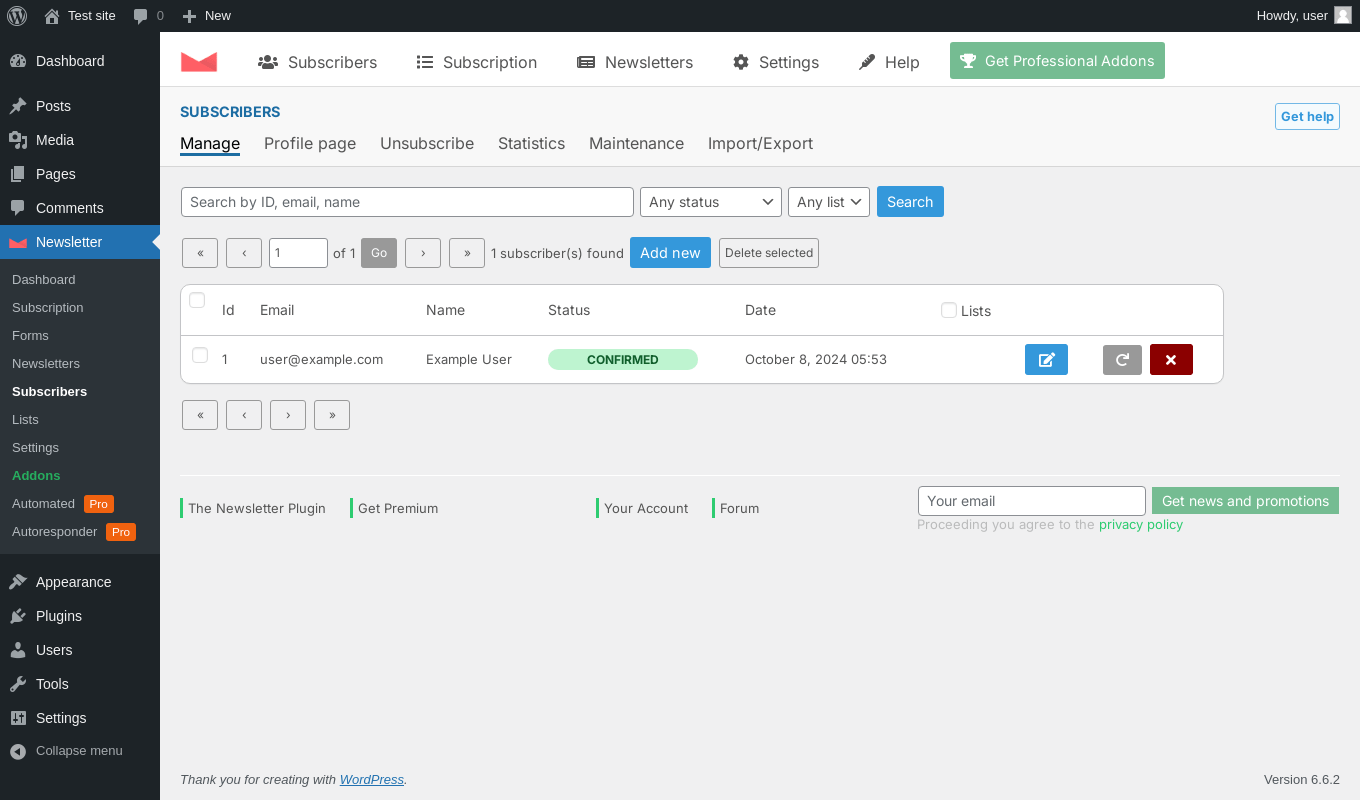 Does Newsletter work with WordPress 6.6.2 and PHP 8.1.12? A smoke test was performed on .