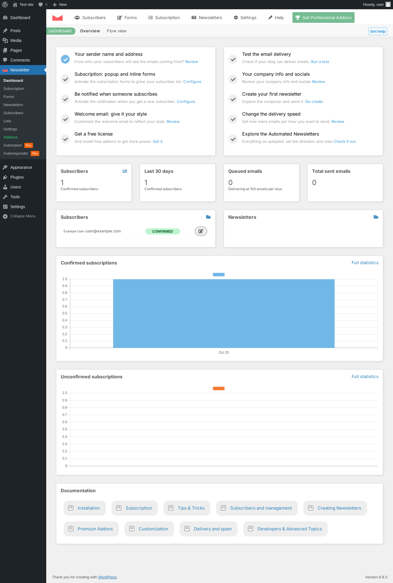 Does Newsletter work with WordPress 6.8.3 and PHP 8.1.12? A smoke test was performed on .