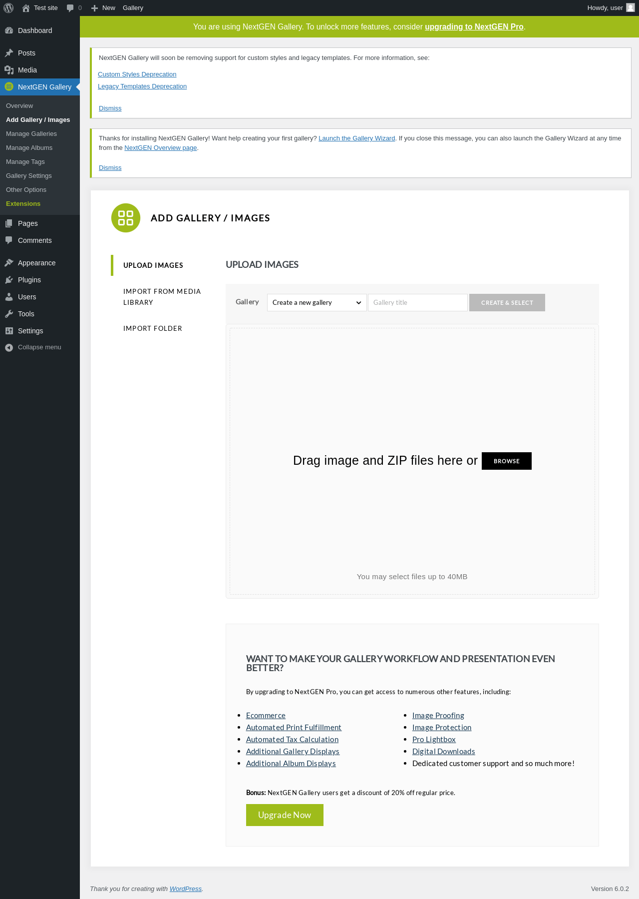 Does NextGEN Gallery work with WordPress 6.0.2 and PHP 7.4.8? A smoke test was performed on .