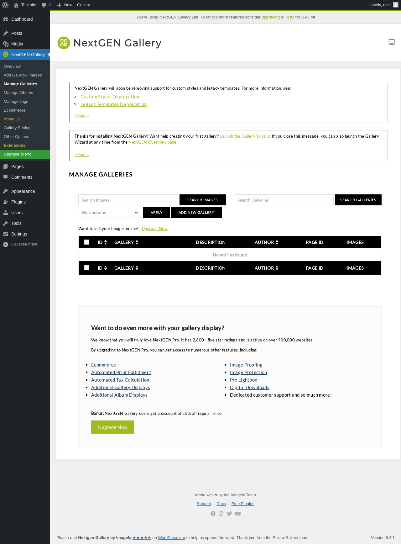 Does NextGEN Gallery work with WordPress 6.4.1 and PHP 8.1.12? A smoke test was performed on .