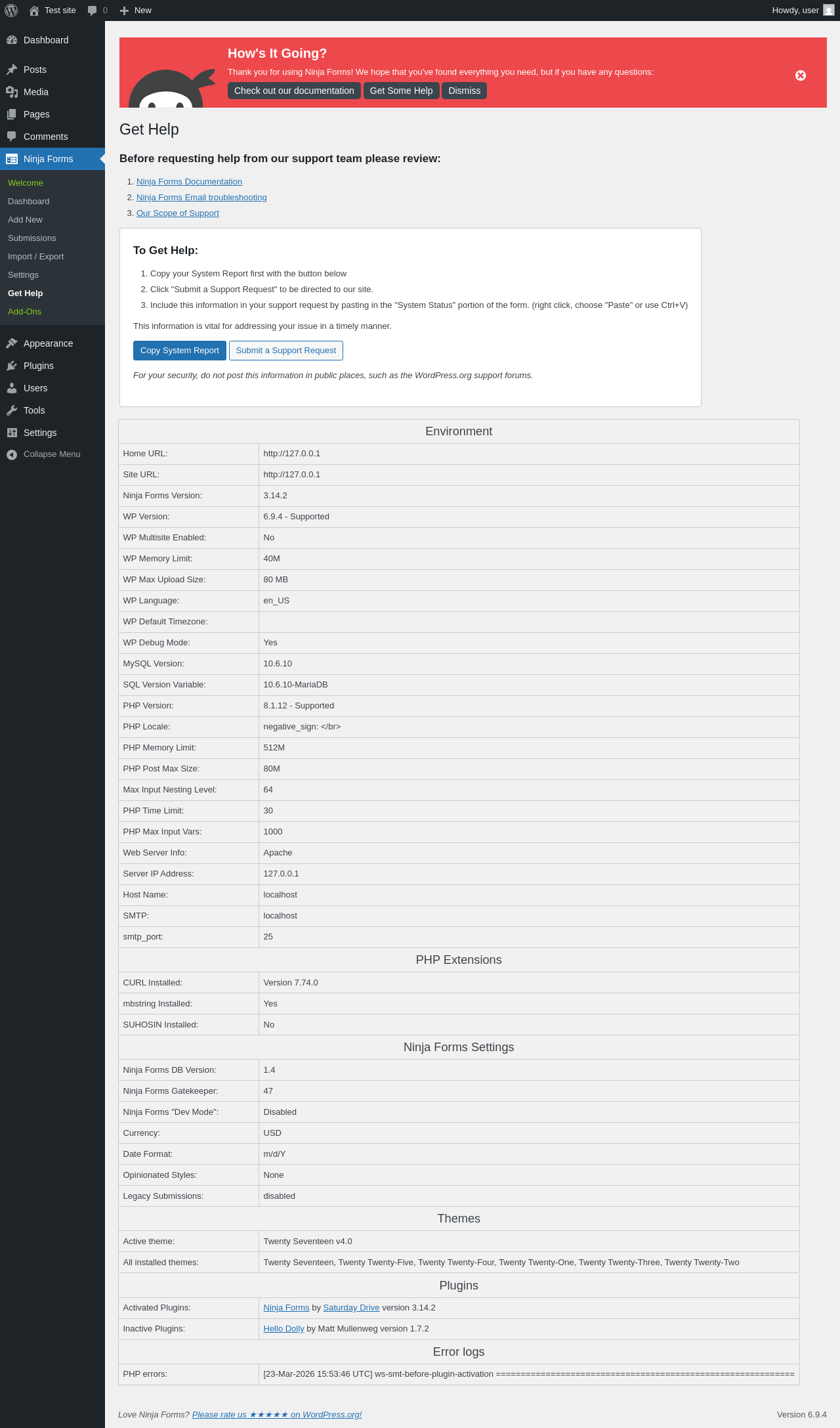 Does Ninja Forms work with WordPress 6.9.4 and PHP 8.1.12? A smoke test was performed on .