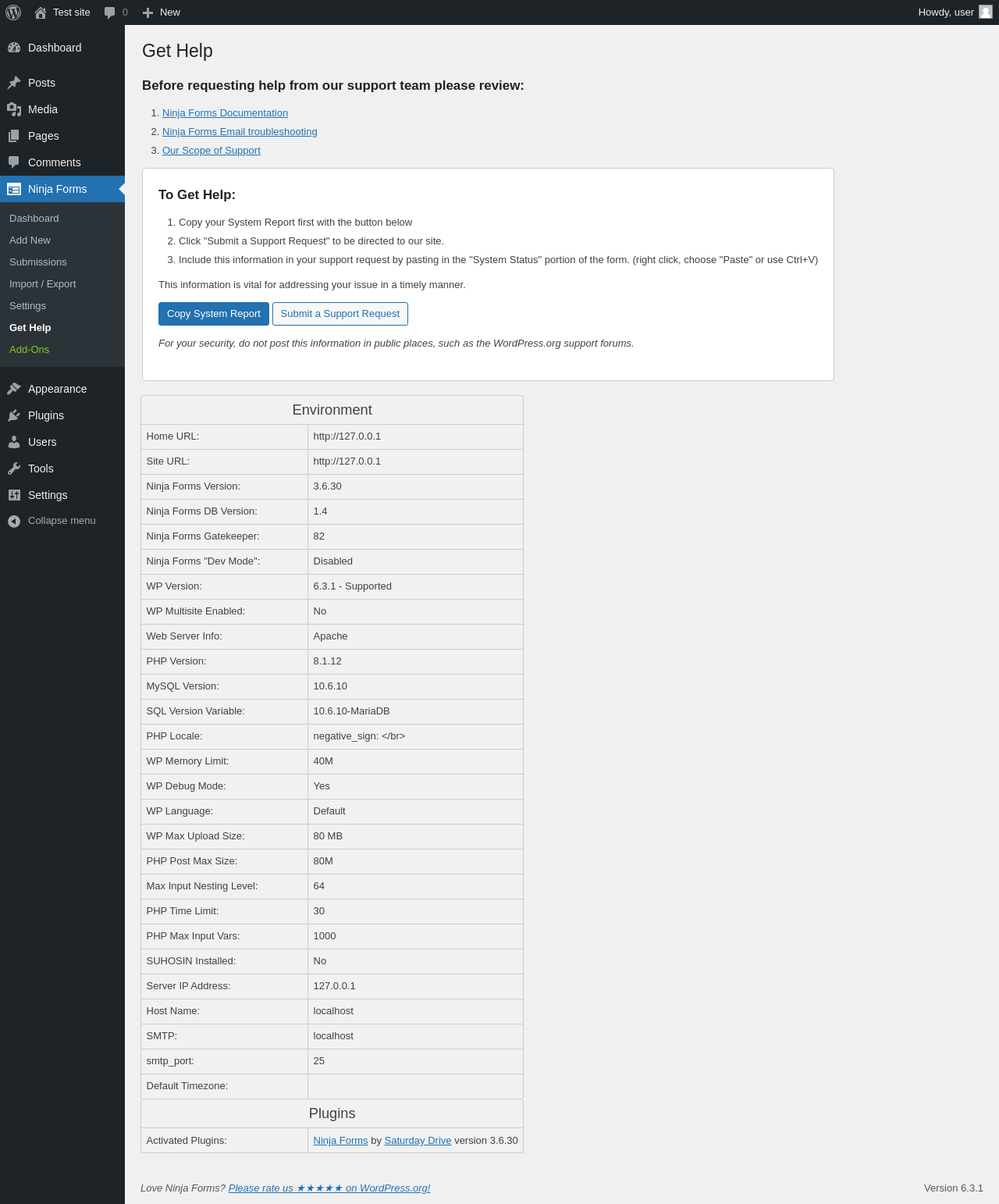 Does Ninja Forms work with WordPress 6.3.1 and PHP 8.1.12? A smoke test was performed on .