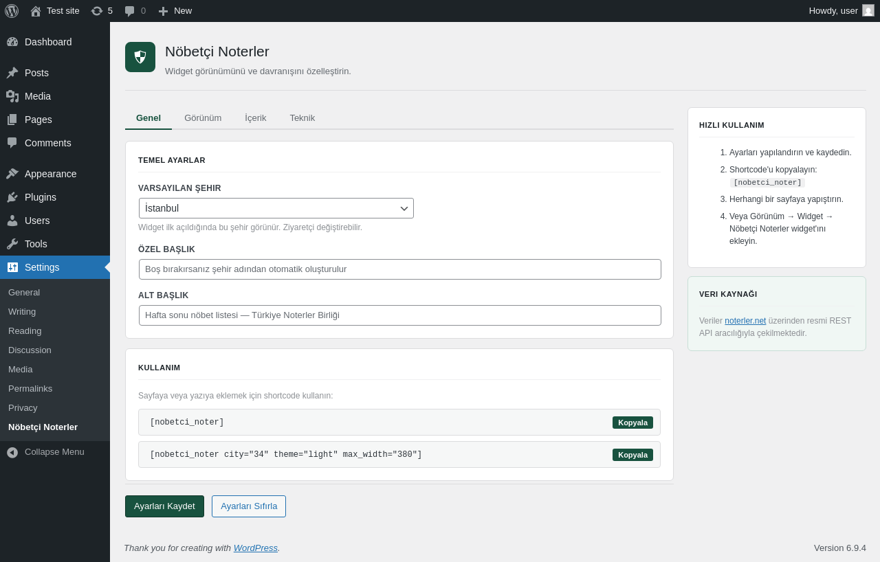 | URL | /wp-admin/options-general.php?page=nobetci-noterler |