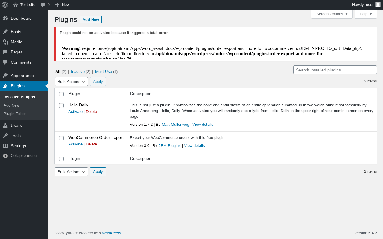 | The plugin could not be activated | |