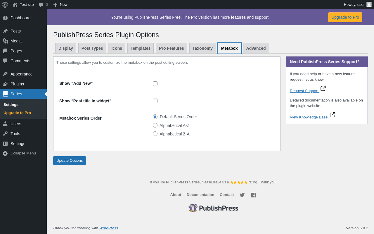 Does PublishPress Series work with WordPress 6.8.2 and PHP 8.1.12? A smoke test was performed on .
