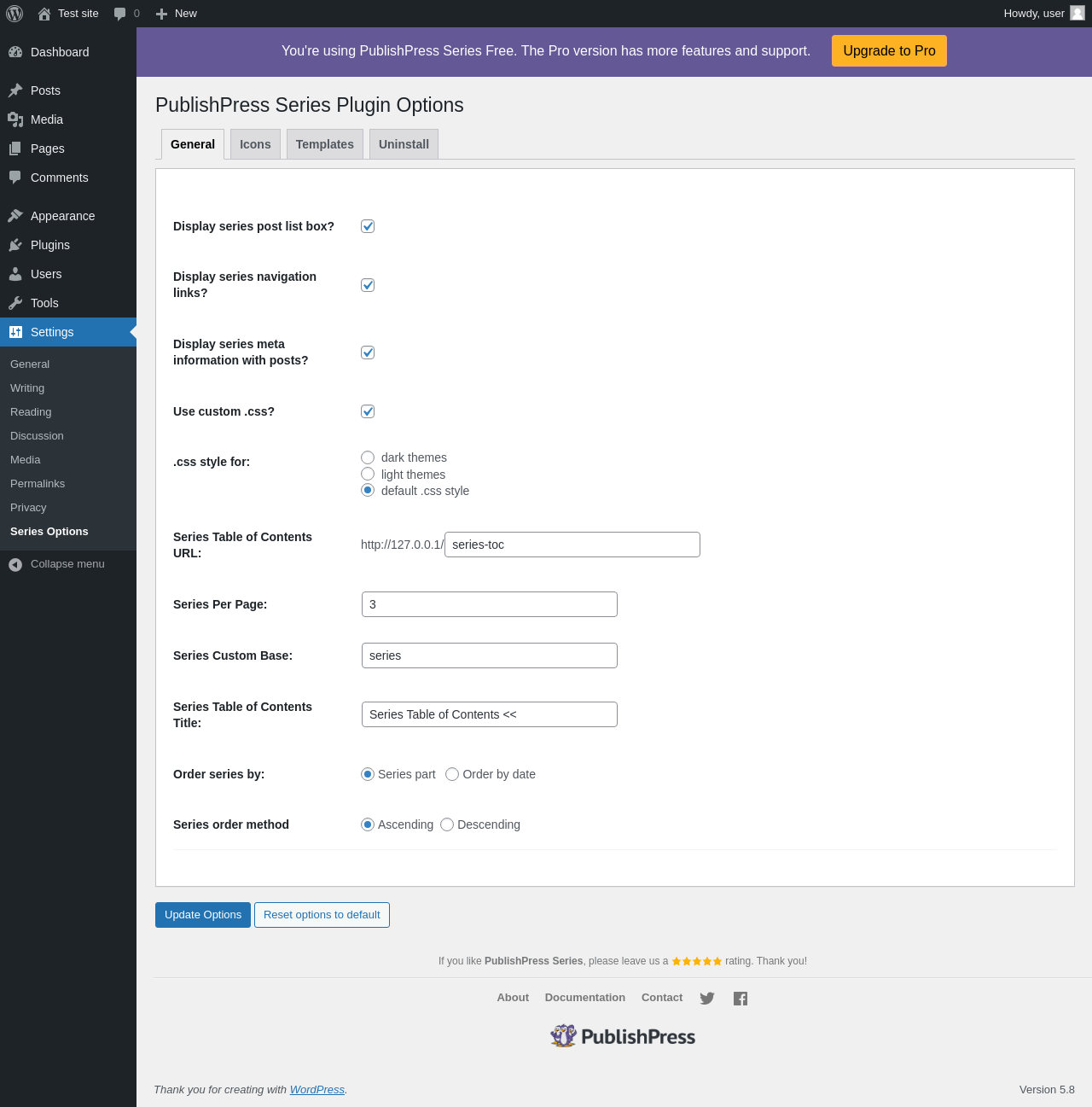 | URL | /wp-admin/options-general.php?page=orgseries_options_page |