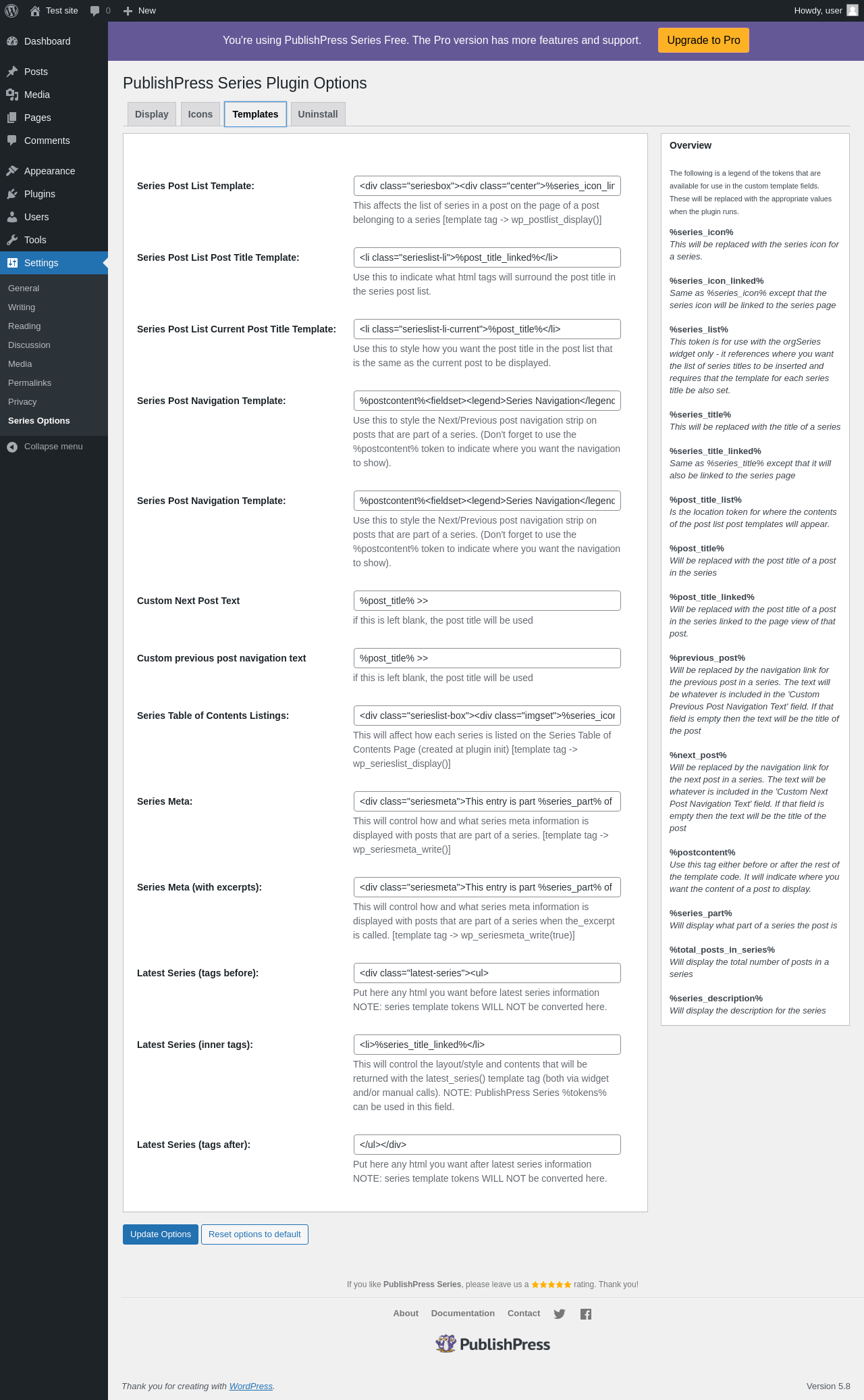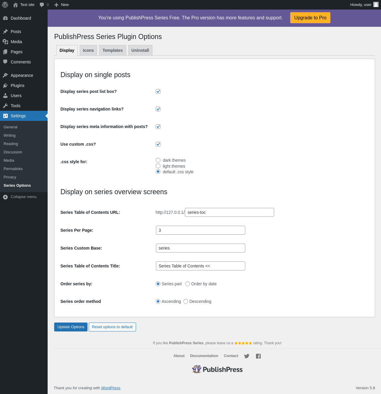 | URL | /wp-admin/options-general.php?page=orgseries_options_page |