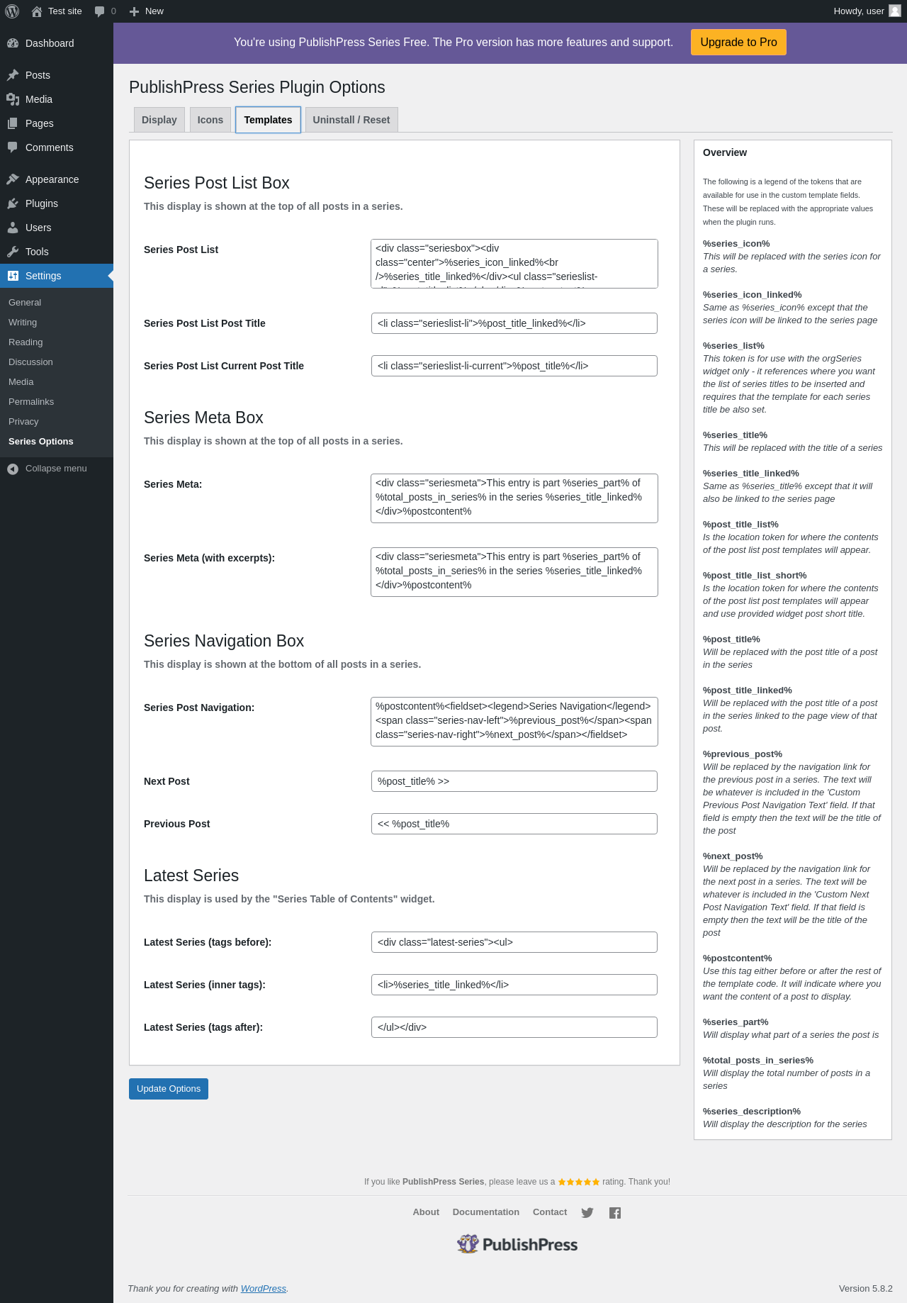 | URL | /wp-admin/options-general.php?page=orgseries_options_page |