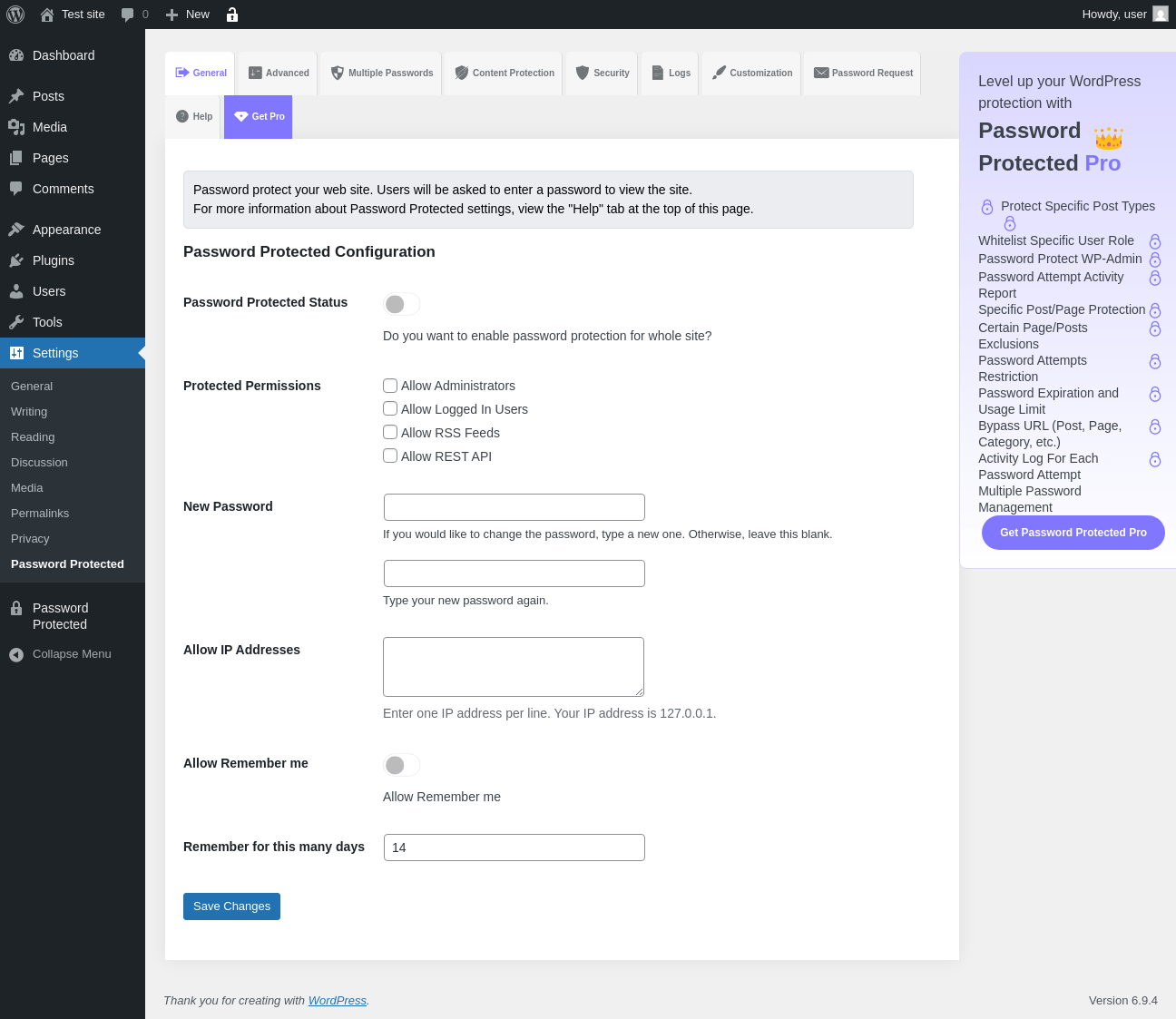 | URL | /wp-admin/options-general.php?page=password-protected |