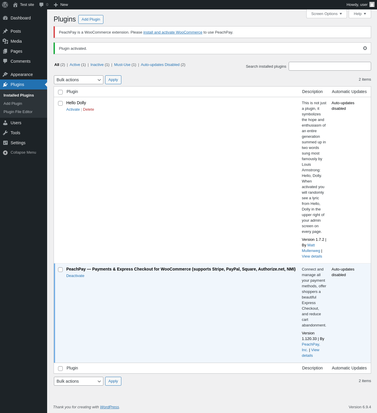 | Requested URL | /wp-admin/plugins.php?action=activate&plugin=peachpay-for-woocommerce%2Fpeachpay.php&plugin_status=all&paged=1&s&_wpnonce=2074e9fb41 |